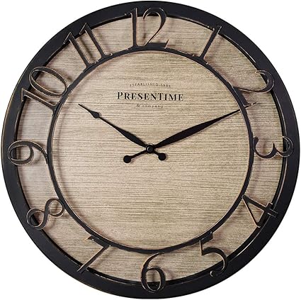 Presentime & Co 13" Farmhouse Series Wall Clock, Quartz Movement, Shiplap Style, Raised 3D Arabic Numeral, Oil Rubbed Bronze