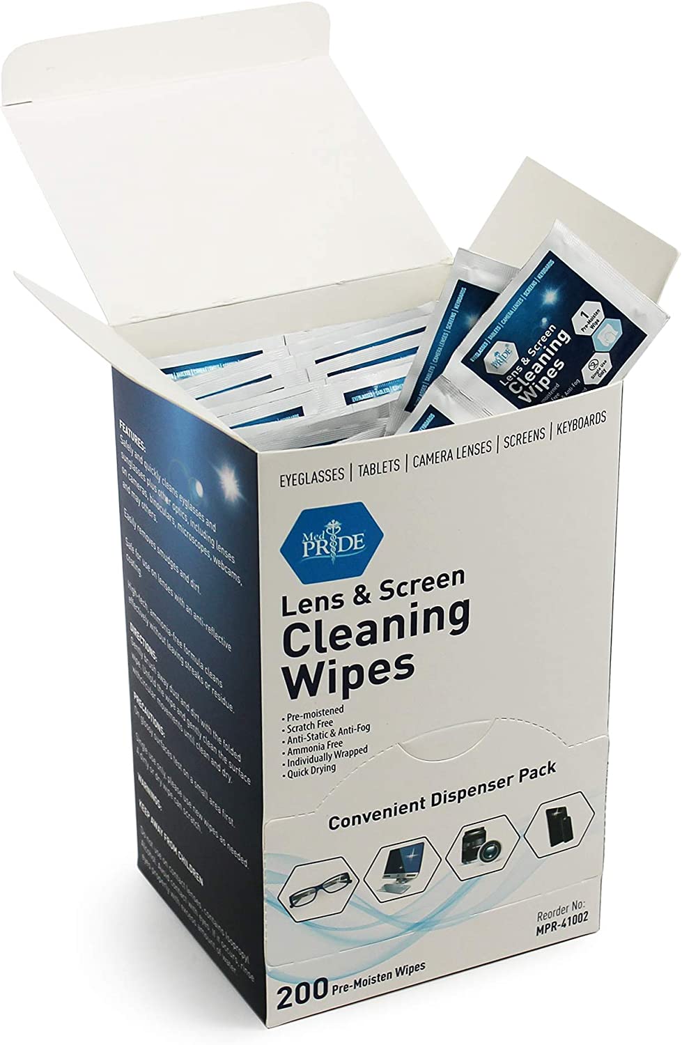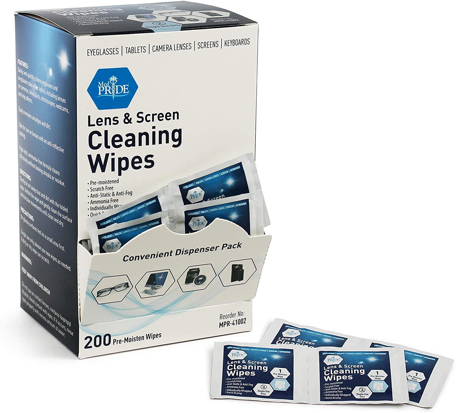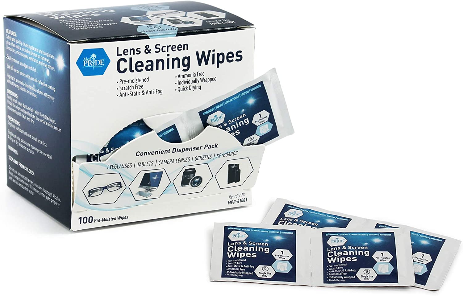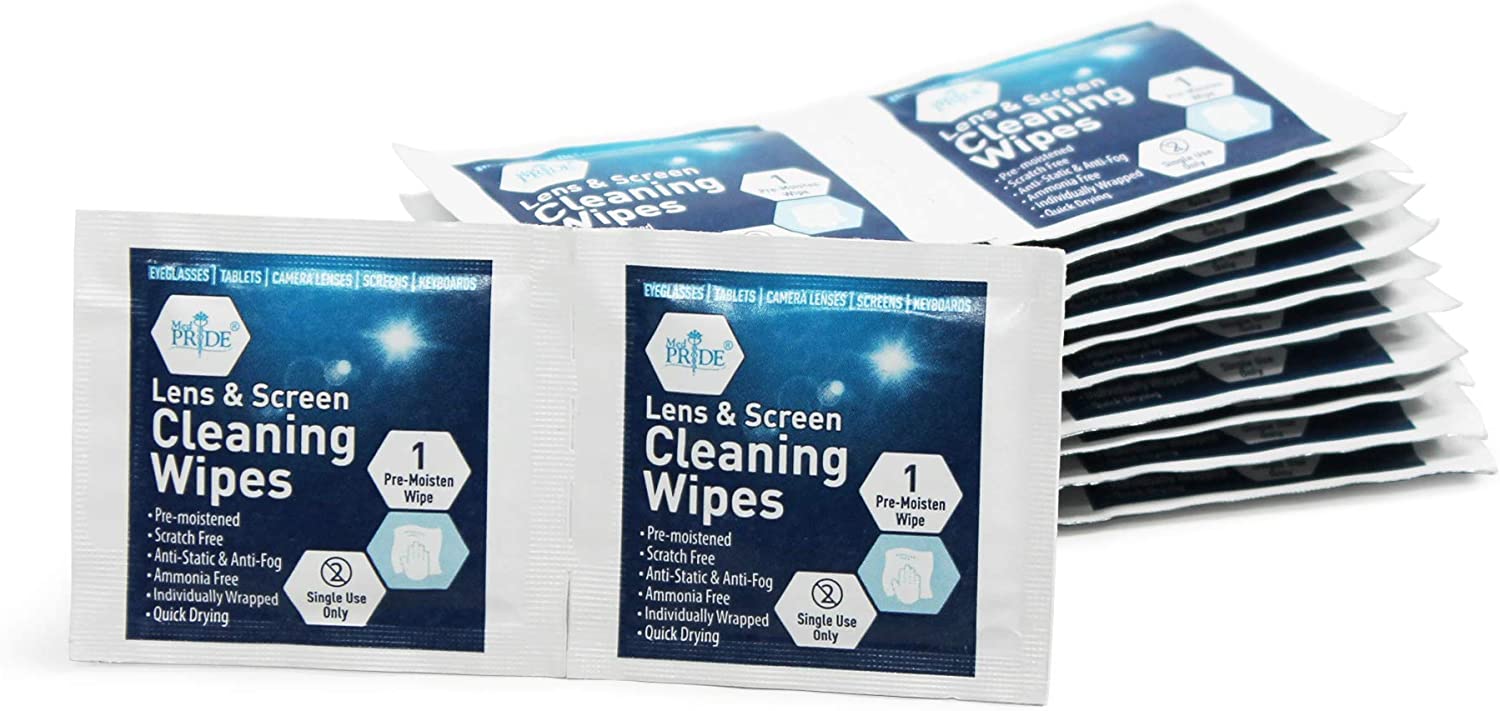 Medpride Premoistened Lens Wipes| Anti-Static, Anti-Fog, Quick-Dry & Scratch-Free| Cleaning Cloths for LED Touch Screen, iPhones, iPads, Computer Monitors, Eyeglasses, Camera Lenses, Laptop (100)