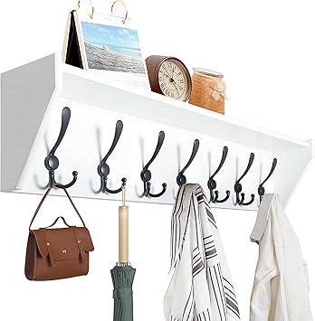 WEBI Coat Rack Wall Mount with Shelf, 35_‹__‹_ Long White Shelf with Hooks Underneath, 7 Triple Hooks, Wall Mounted Coat Rack with Shelf, Key Rack for Wall, Entryway Shelves for Wall