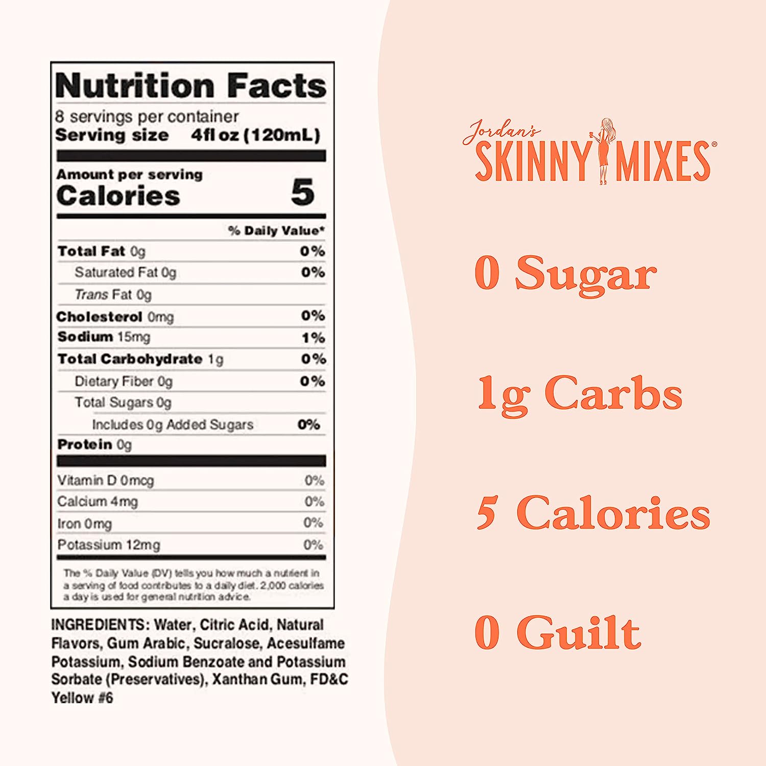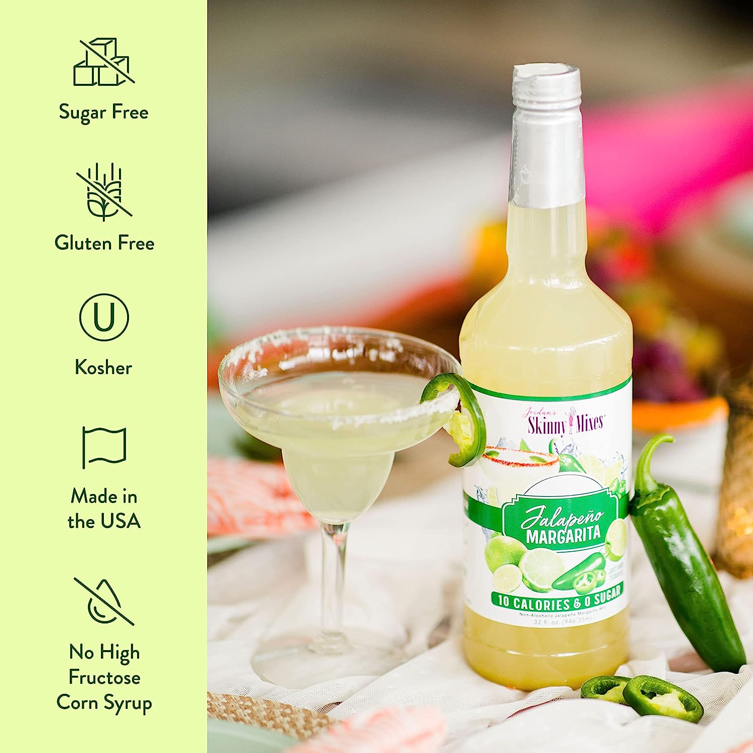 Jordan's Skinny Mixes 0 Calorie, 0 Carb, 0 Sugar Margarita Cocktail Mixer - the perfect way to add flavor to your cocktails without the guilt! Whether you're counting calories, carbs, or sugar, this mixer has you covered. Simply add a splash to your favorite spirit to give it an extra boost of flavor without any of the extra sugar or carbs. With a variety of delicious flavors to choose from, you'll never get bored of your cocktails. Try Jordan's Skinny Mixes 0 Calorie, 0 Carb, 0 Sugar Cocktail Mix today and start sipping guilt-free!