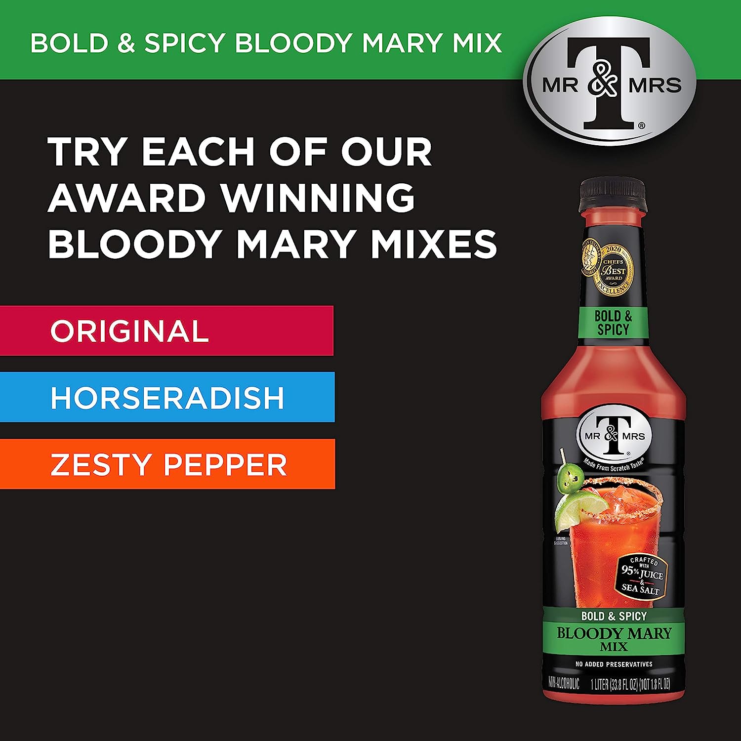 Serve up some fun at your next party or gathering with the premium, quality ingredients in Mr & Mrs T cocktail mixers. Available in an assortment of flavors from sweet to savory, Mr & Mrs T mixers are a guaranteed crowd pleaser. The Original Bloody Mary Mix blends the taste of ripe tomatoes with lemon juice and coarse black pepper, and it's perfected with sea salt and 95% juice. All mixers are ready to be mixed with your favorite spirits or enjoyed as a virgin cocktail, and this 1.75 L bottle is the perfect size for entertaining. Mix cocktails like a pro with the made-from-scratch taste of Mr & Mrs T.