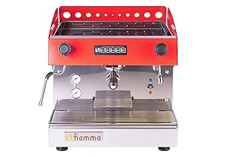 Fiamma Caravel 1 CV - 1 Group Commercial Espresso Machine, stainless steel & red, extra large
