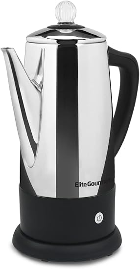 Elite Gourmet EC812 Electric 12-Cup Coffee Percolator with Keep Warm, Clear Brew Progress Knob Cool-Touch Handle Cord-less Serve, Stainless Steel