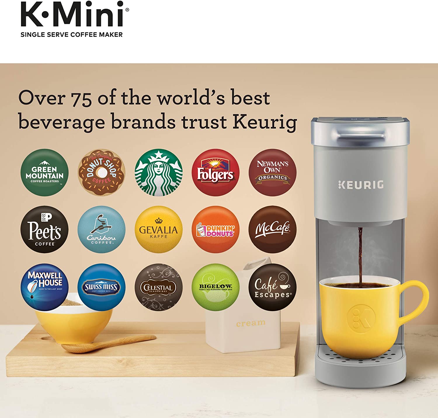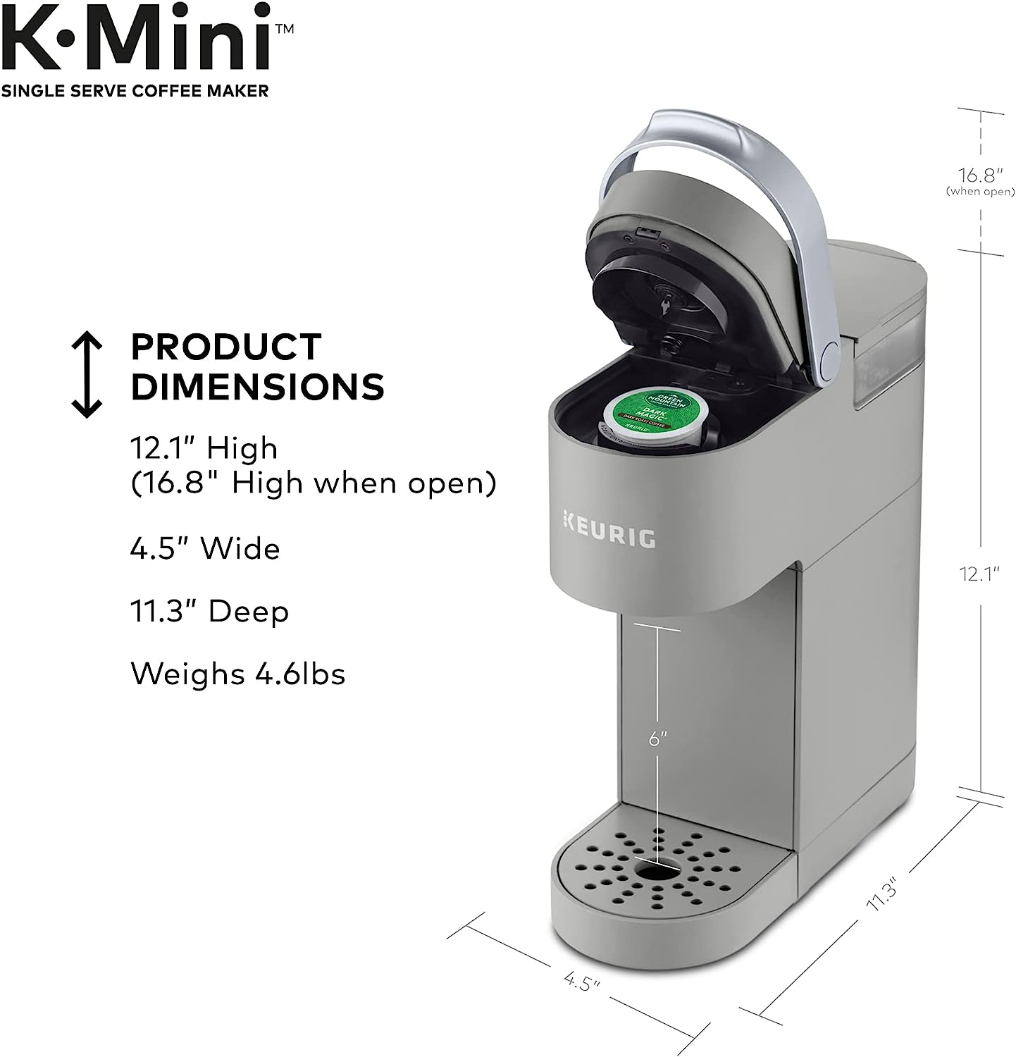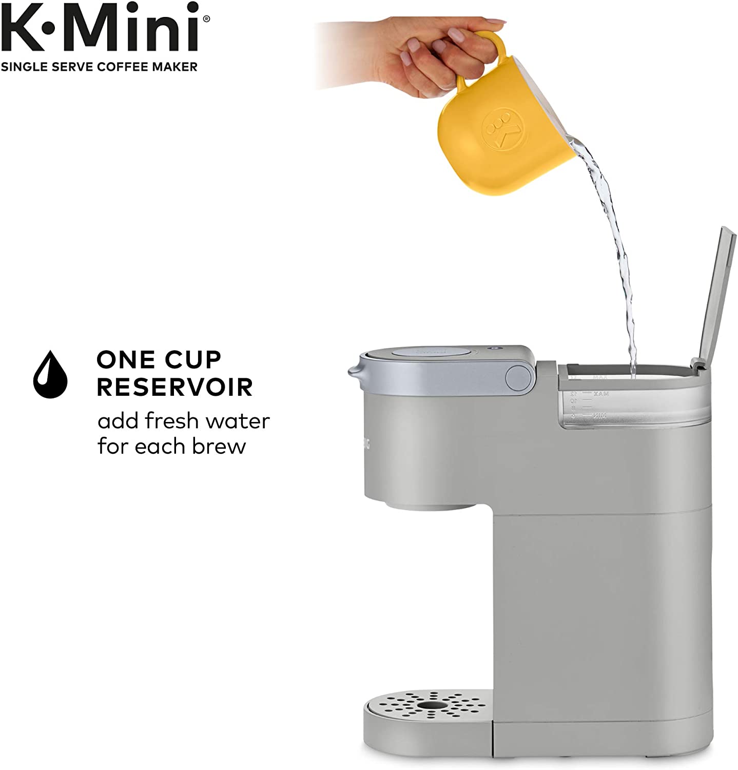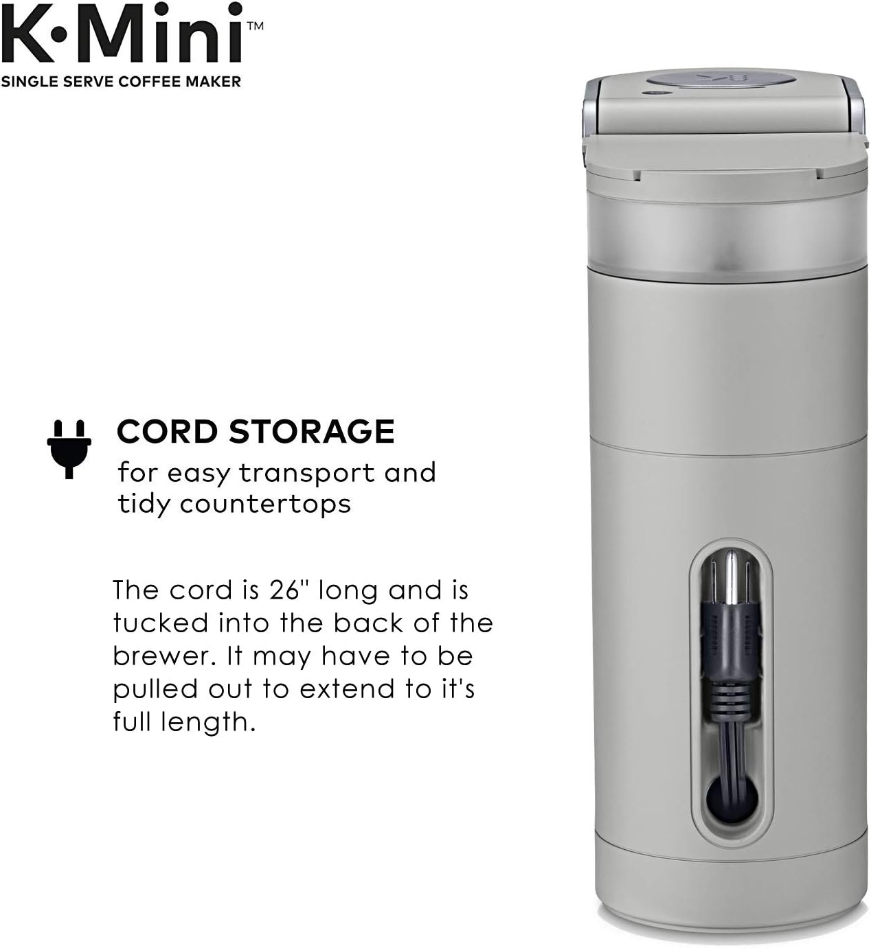 The Keurig K-Mini single serve coffee maker in Black features a sleek design with matte finish, and at less than 5 inches wide is the perfect size for any space or occasion. The K-Mini brewer is effortlessly simple to use - just add fresh water to the reservoir, pop in your favorite K-Cup pod, press the brew button and enjoy fresh brewed, delicious coffee in minutes. Choose from hundreds of delicious K-Cup pod varieties to enjoy 6-12oz of your favorite coffee, tea, cocoa, and iced beverages. With a single cup reservoir and cord storage, the K-Mini coffee maker is the portable brewer that makes anywhere perfect for great coffee. The K-Mini coffee maker is available in a variety of matte-finish colors. Based on consumer feedback, we have updated the K-Mini Brewer. Customer reviews have been removed that relate to the previous version of the brewer.