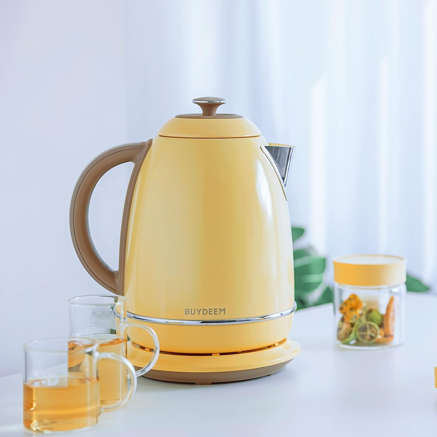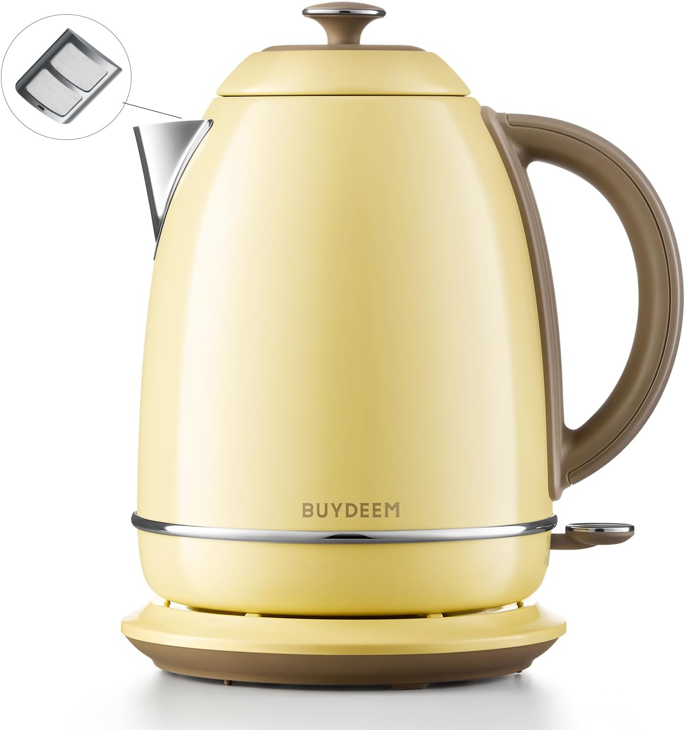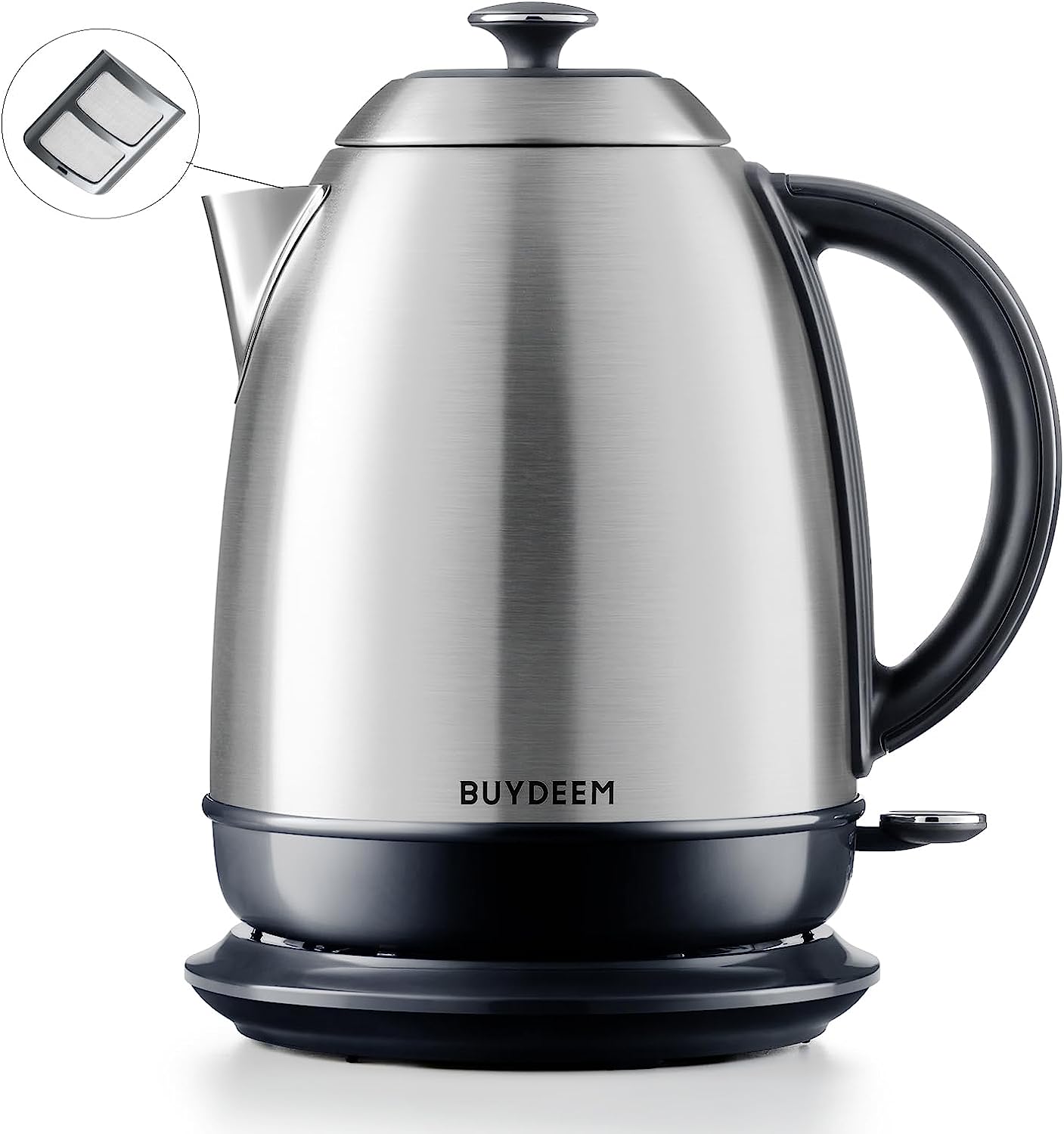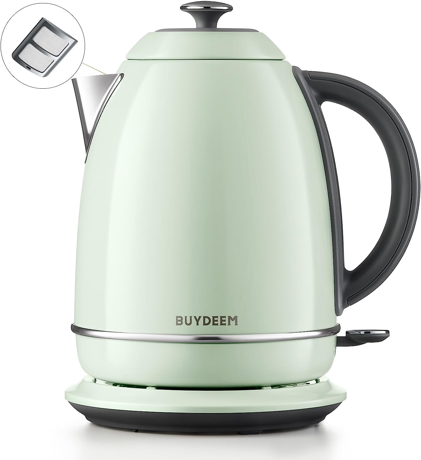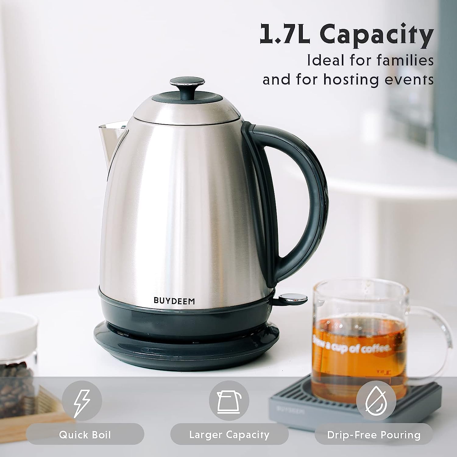 BUYDEEM K640 Stainless Steel Electric Tea Kettle with Auto Shut-Off and Boil Dry Protection, 1.7 Liter Cordless Hot Water Boiler with Swivel Base, 1440W, Cozy Greenish