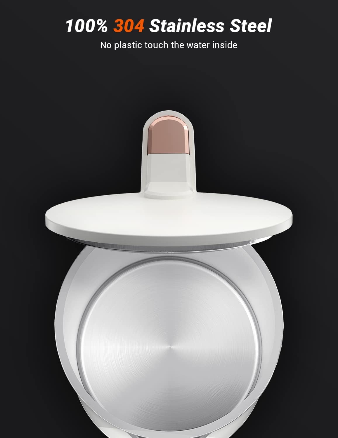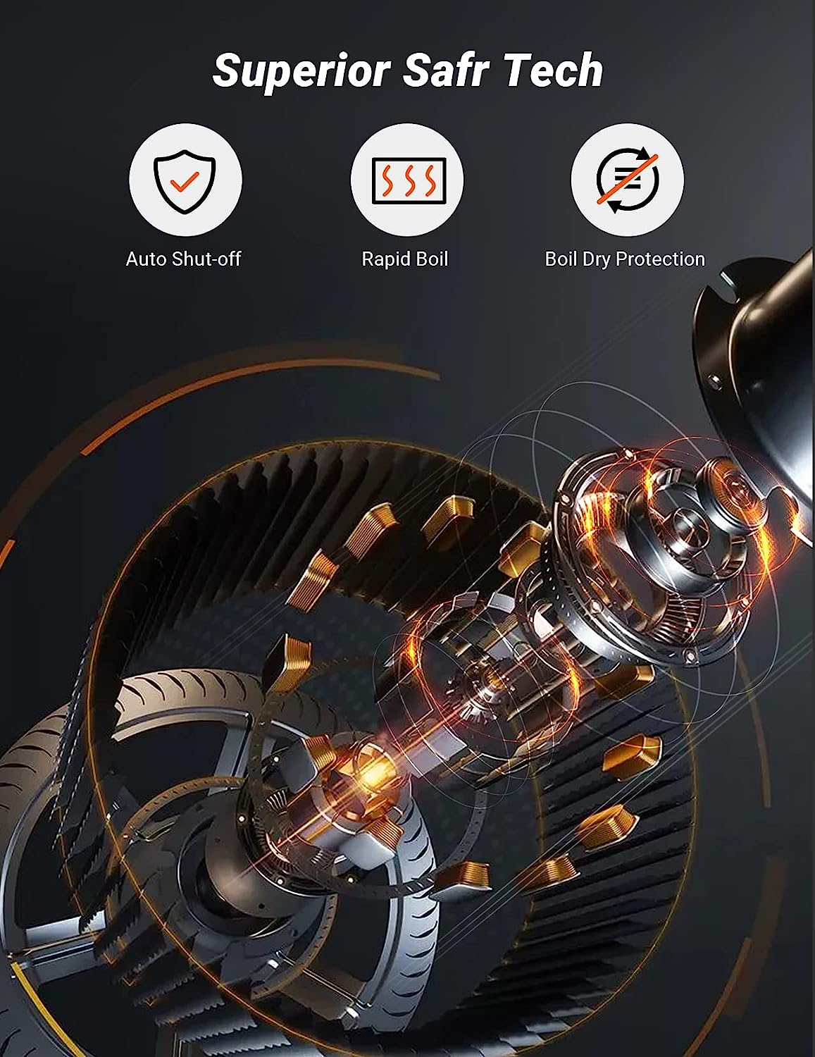 • 1500W Quick Boil - This kettle can boil 1.5L of water in about 5 minutes. And you'll know exactly when your water is boiling with the red LED light. Reminds you to prepare hot tea, coffee, or instant soup.