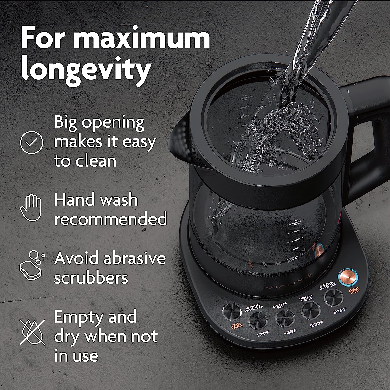 • The Viante Difference – Count on us to deliver the experience of world-class flavor and service. Your temperature control electric kettle is backed by our commitment to your complete satisfaction.
