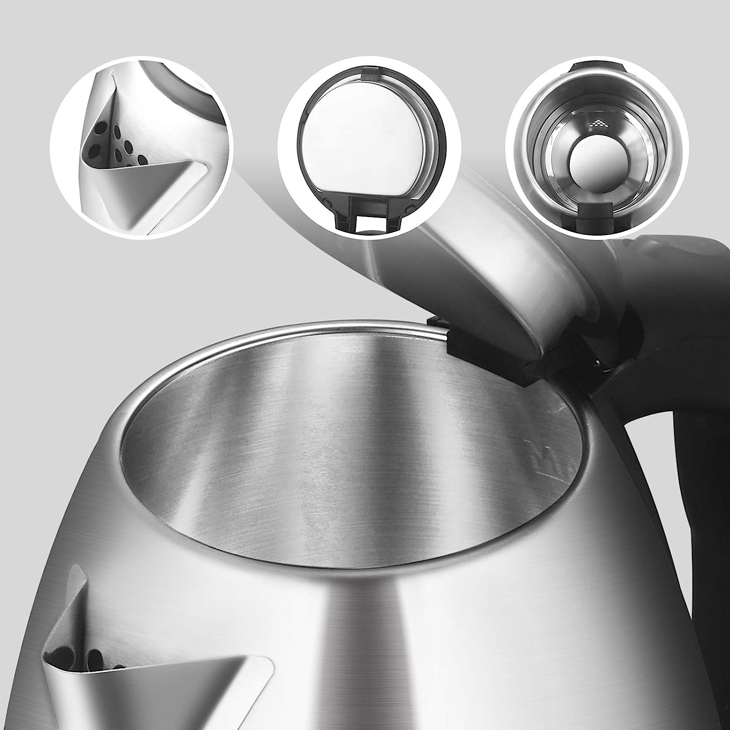 • [ Humanized Design Electric Kettle] – The handle is made from safety silicone material that helps to prevent burns while handling the water kettle. And kettle can be placed on the heating base in 360 degrees. The cord can be neatly wrapped and stored within the base.