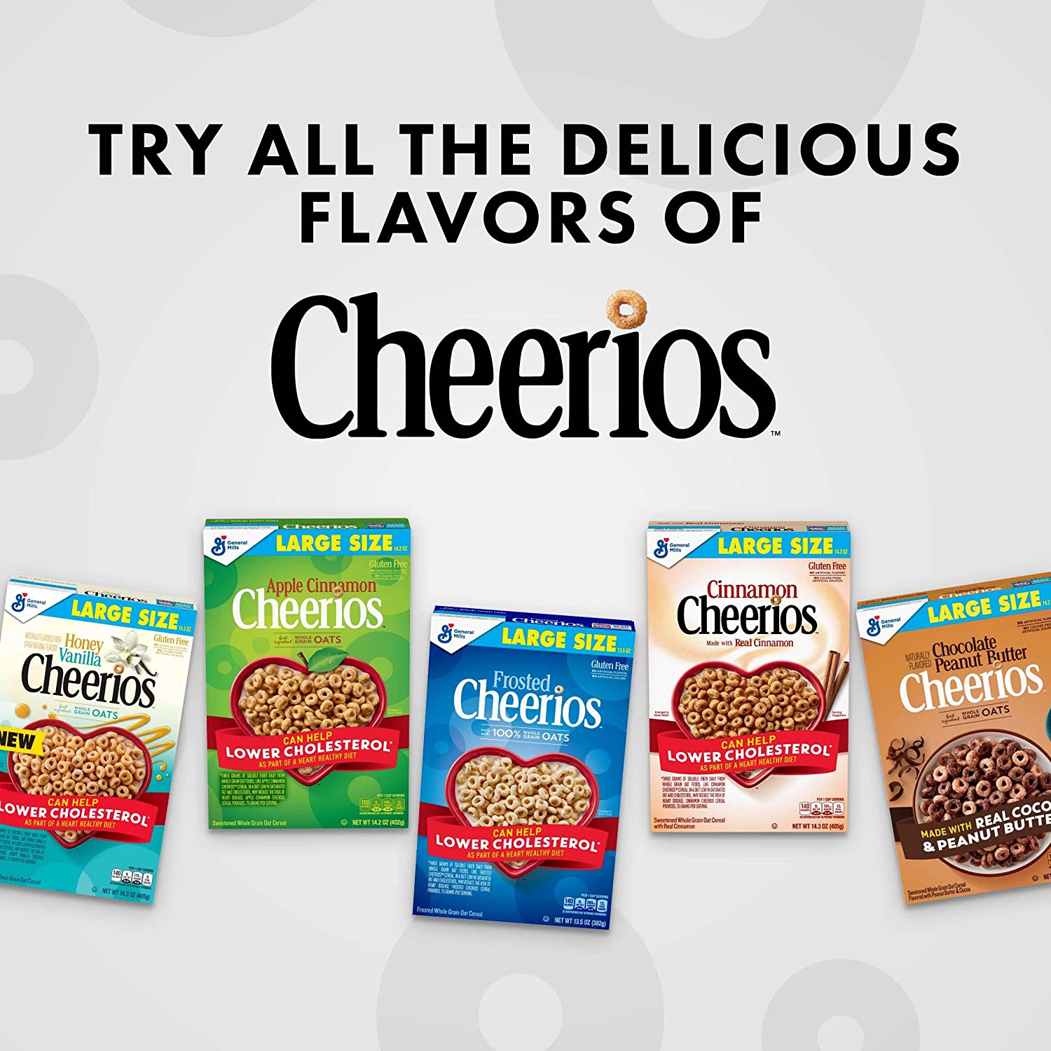 Honey Vanilla Cheerios Heart Healthy Cereal brings together two favorite flavors in one perfect O. America’s favorite toasted Os are made with whole grain oats as the first ingredient (24g whole grain per serving, at least 48g recommended daily). The rich flavors of honey and vanilla make for perfect harmony. Every serving of the gluten free cereal provides 12 essential vitamins and minerals, and each little O is made with no artificial flavors or colors from artificial sources. Share the vanilla honey flavored cereal with your family as part of a gluten free breakfast. Naturally flavored Os like vanilla honey Cheerios also make great gluten free snacks for kids. The oat cereal is a good source of iron and calcium. Honey Vanilla Cheerios can help lower cholesterol as part of a heart healthy diet. Three grams of soluble fiber daily from whole grain oat foods, like Honey Vanilla Cheerios, in a diet low in saturated fat and cholesterol, may reduce the risk of heart disease. Honey Vanilla Cheerios cereal provides 0.75 grams per serving. From kids snacks to a breakfast food for the whole family, General Mills cereals spread goodness from tots to grown-ups.