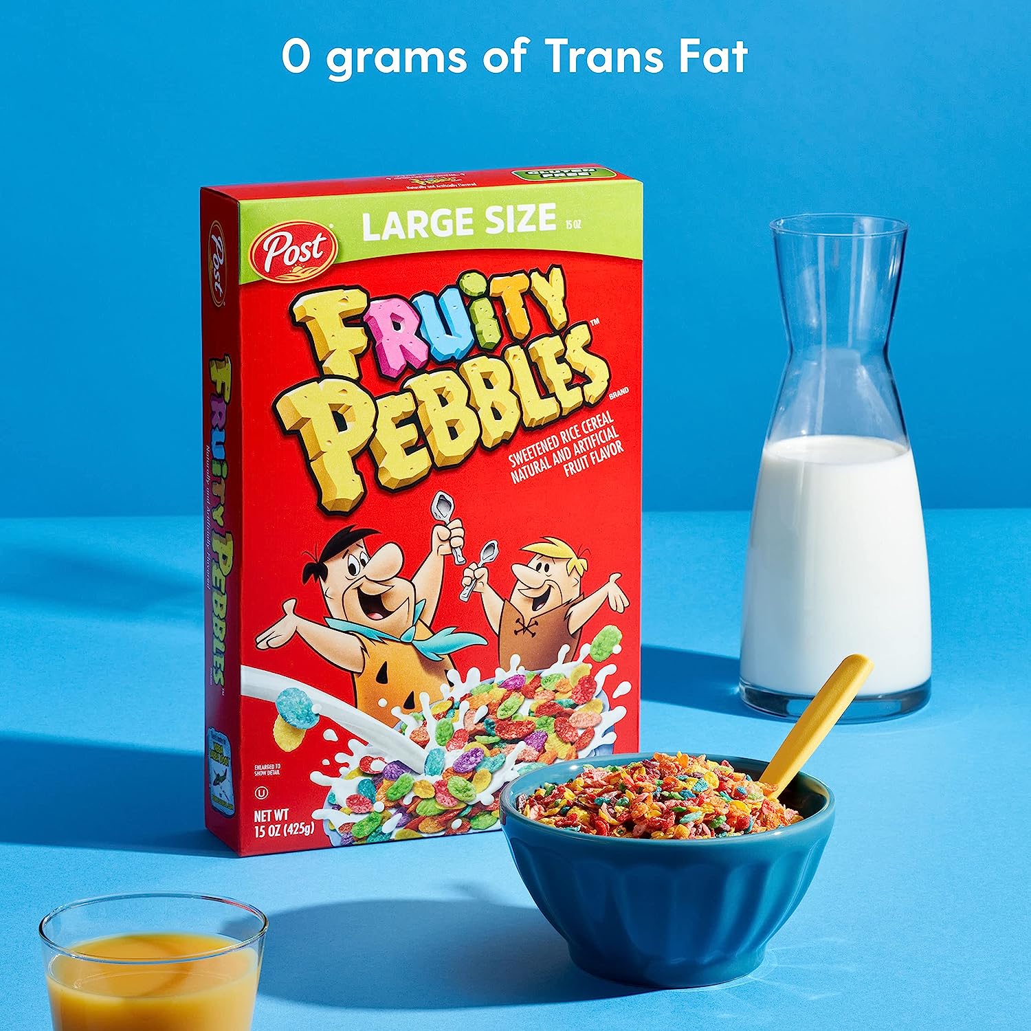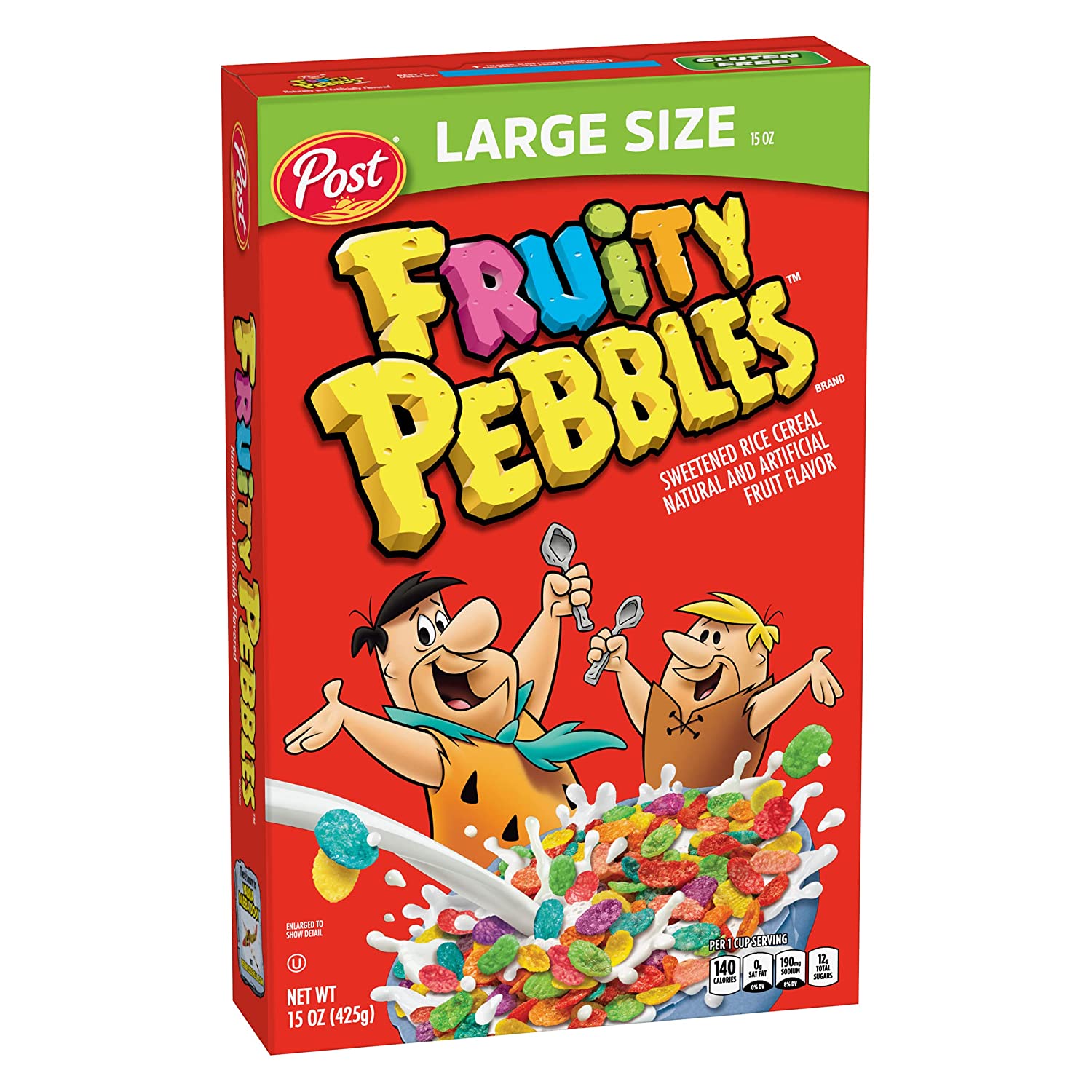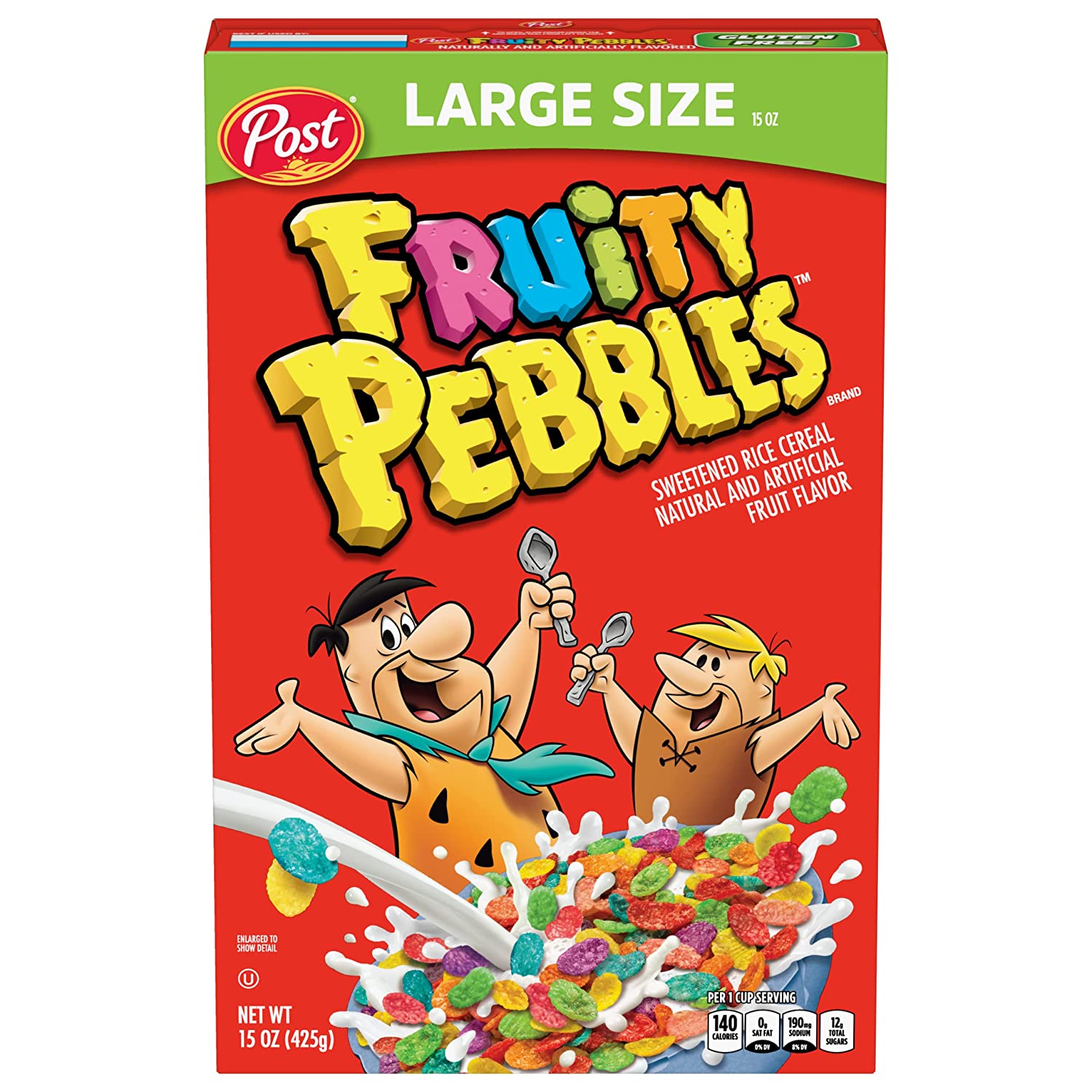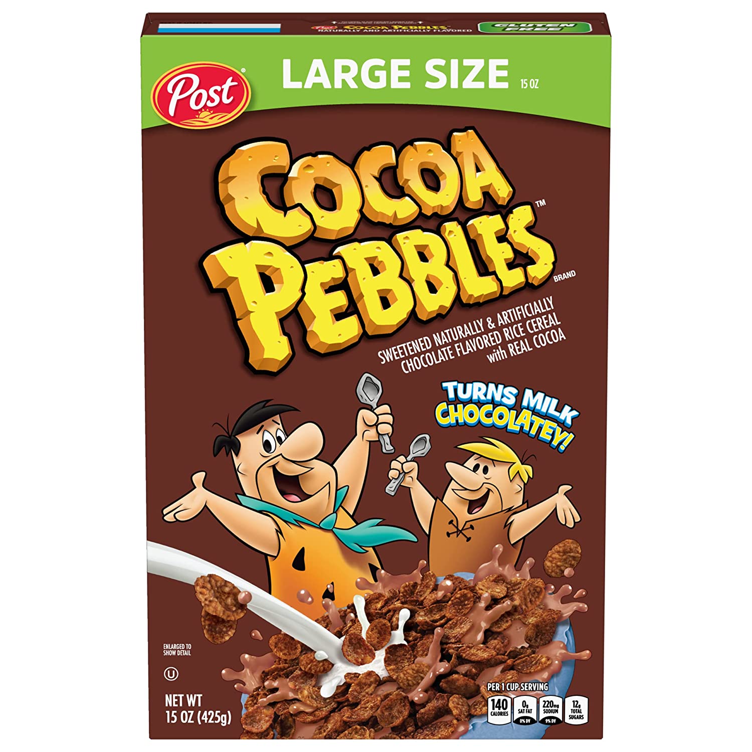Cocoa PEBBLES is a sweetened crispy rice cereal for anyone who wants to start their day in a chocolaty way. This delicious cereal is gluten free and has 11 essential vitamins and minerals. Cocoa PEBBLES has been making mornings rock for over 40 years!