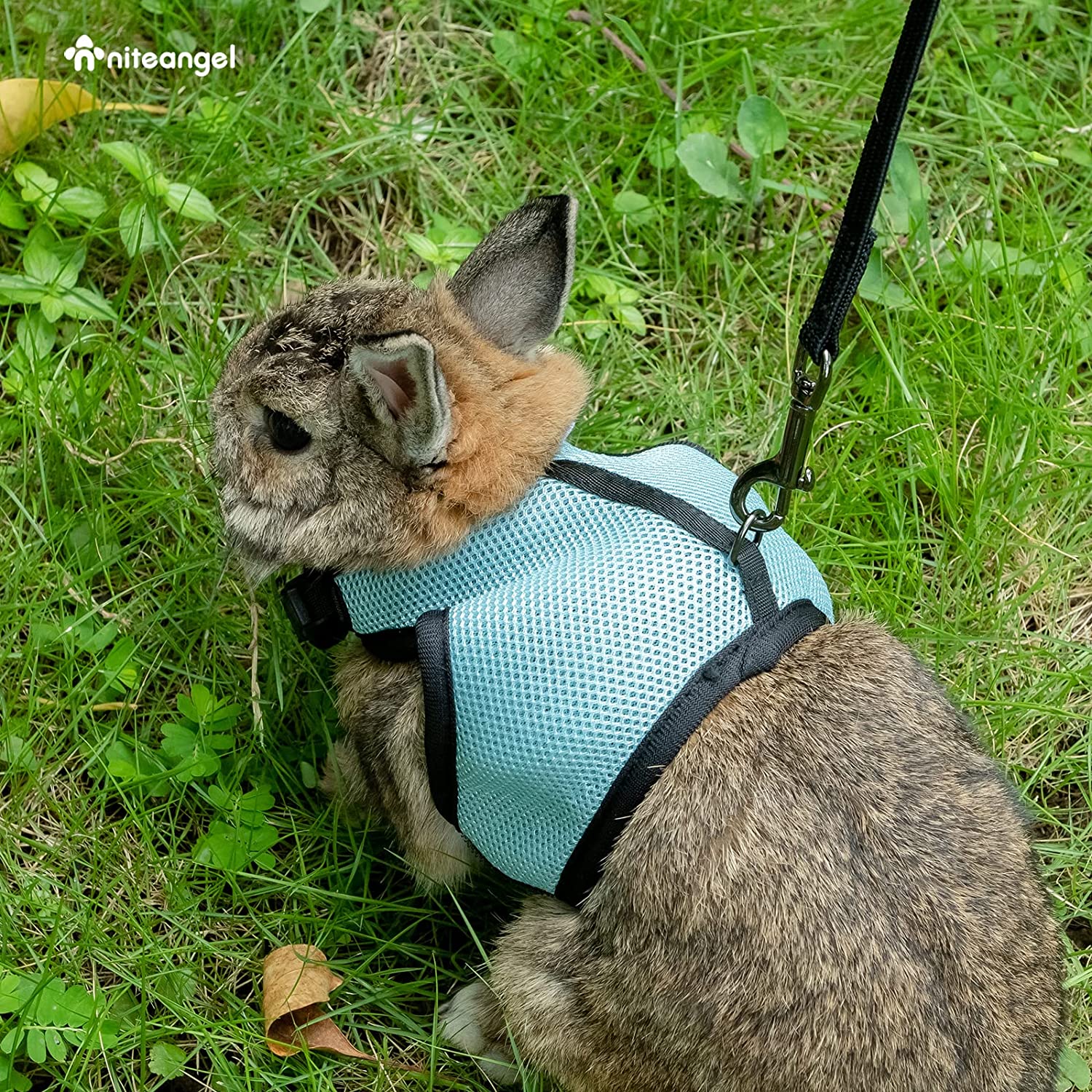 Niteangel Adjustable Soft Harness with Elastic Leash for Rabbits (L, Blue)