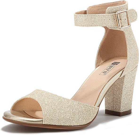 IDIFU Women's Candie-MI Peep Toe Low Block Heels Sandals Ankle Strap Comfy Chunky Wedding Dress Shoes