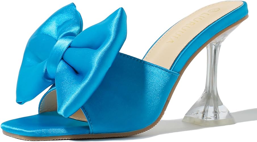 LIURUIJIA Women's Bow Heels High Heel Mule Sandals Square Toe Bow Heel Slippers Comfortable Wedding Party Dress Formal Shoes Slide Unique Heels Chunky