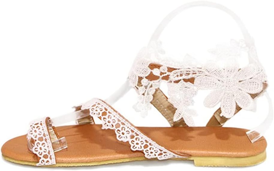 Women's Sandals Flat Clip Toe Casual Lace Floral Beach Flip Flop Comfy Shoes Summer Elegant Toe Ring Roman Sandals Comfy Dress