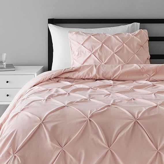 Amazon Basics Soft Twin Size Comforter Sets, All-Season Down-Alternative 2 Piece Bedding Set, Pinch Pleat Design, Twin/TwinXL Size, Blush