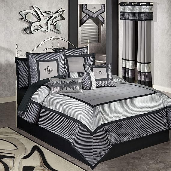 Touch of Class Contemporary Omega Monochromatic Dark Gray Silver Black Comforter Set Queen