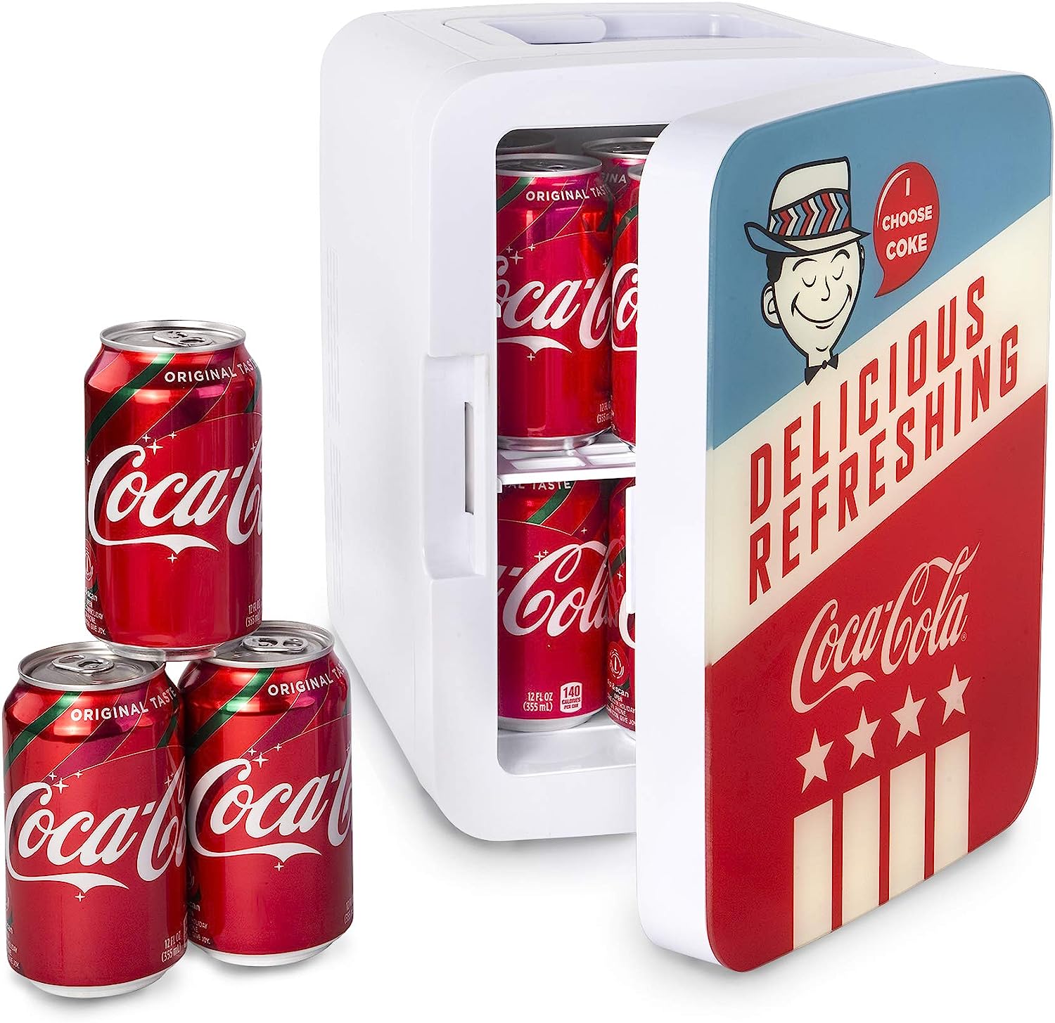 The Coca-Cola Vintage Chic-4L mini refrigerator is perfect in your home, countertop, business/office, dorm, hotel room, car/motor vehicle, or on your next road trip or tailgate party!