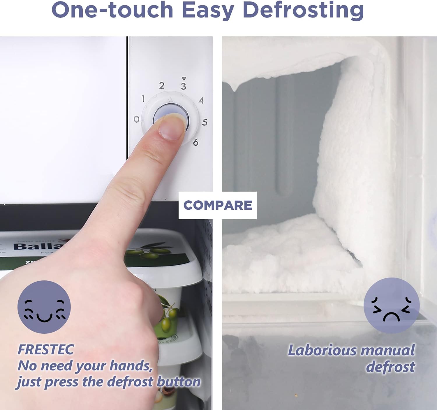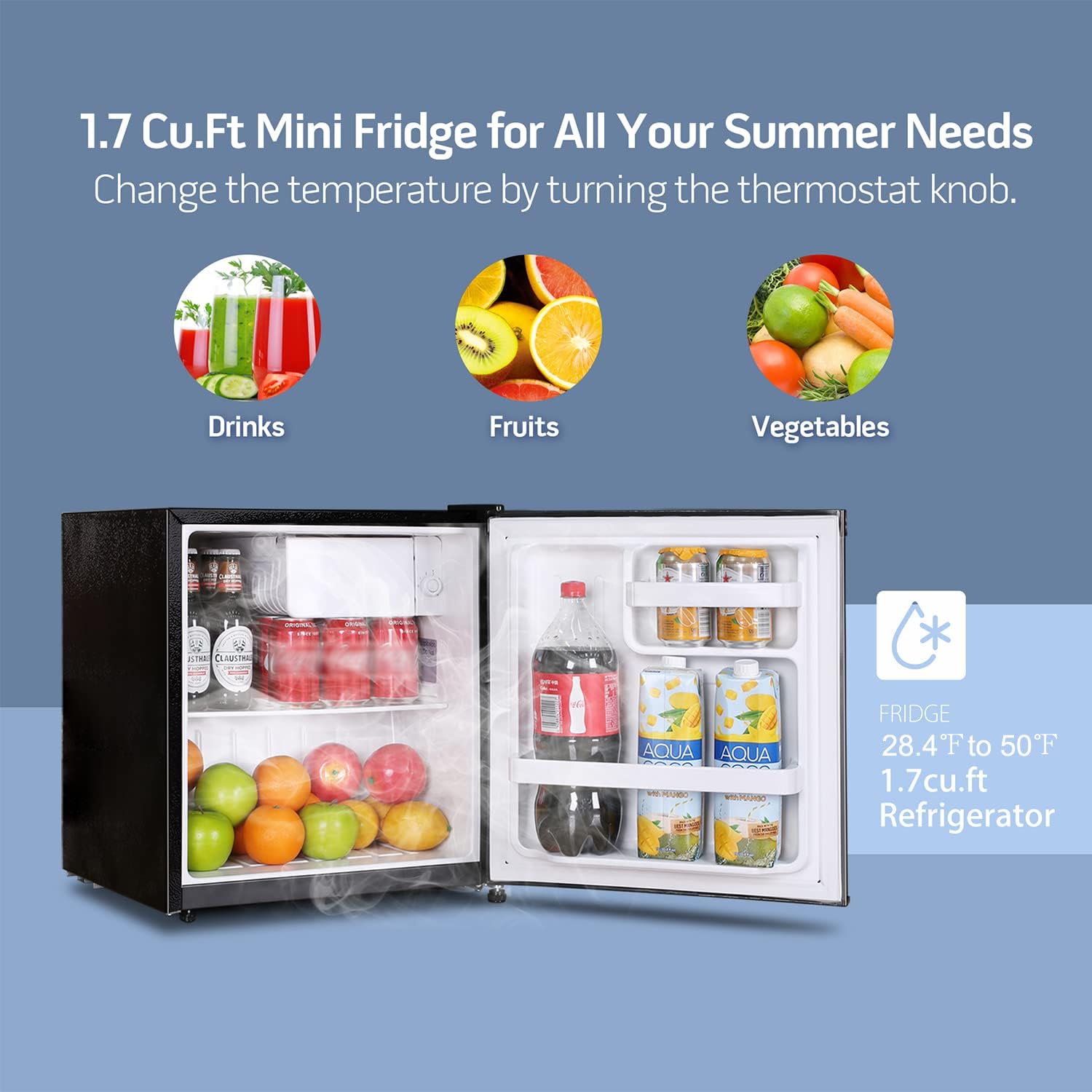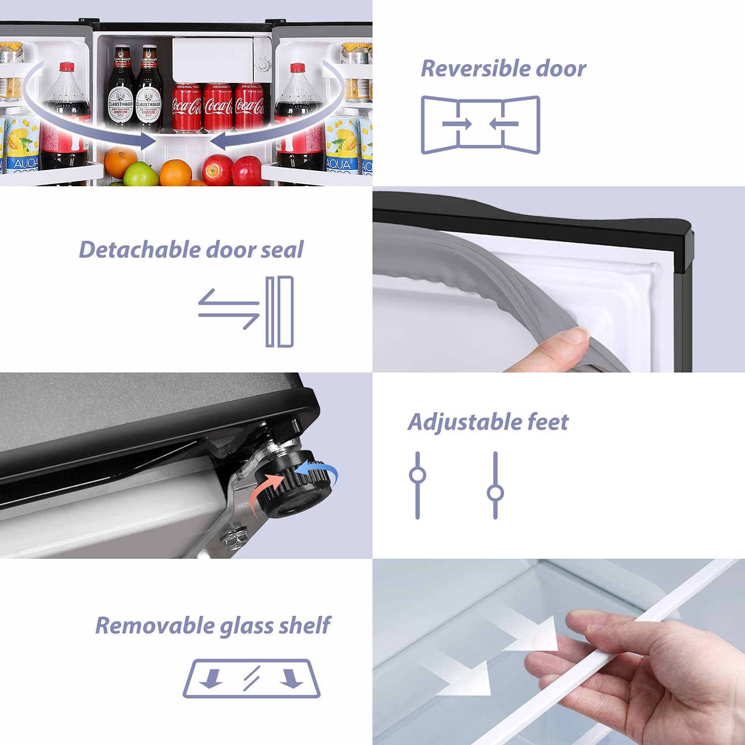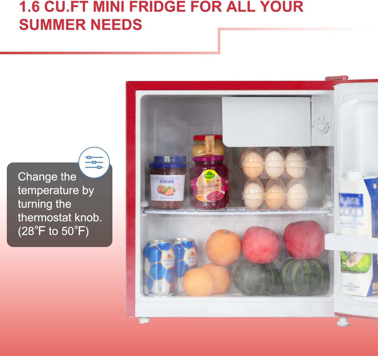 • 6 Adjustable Temperature Control: This mini fridge with freezer is equipped with a compact freezer that ensures frozen food freshness and stores favorite ice-cream. Performed from 28°F to 50°F in refrigerator zone keeps drinks cool enough in hot weather.