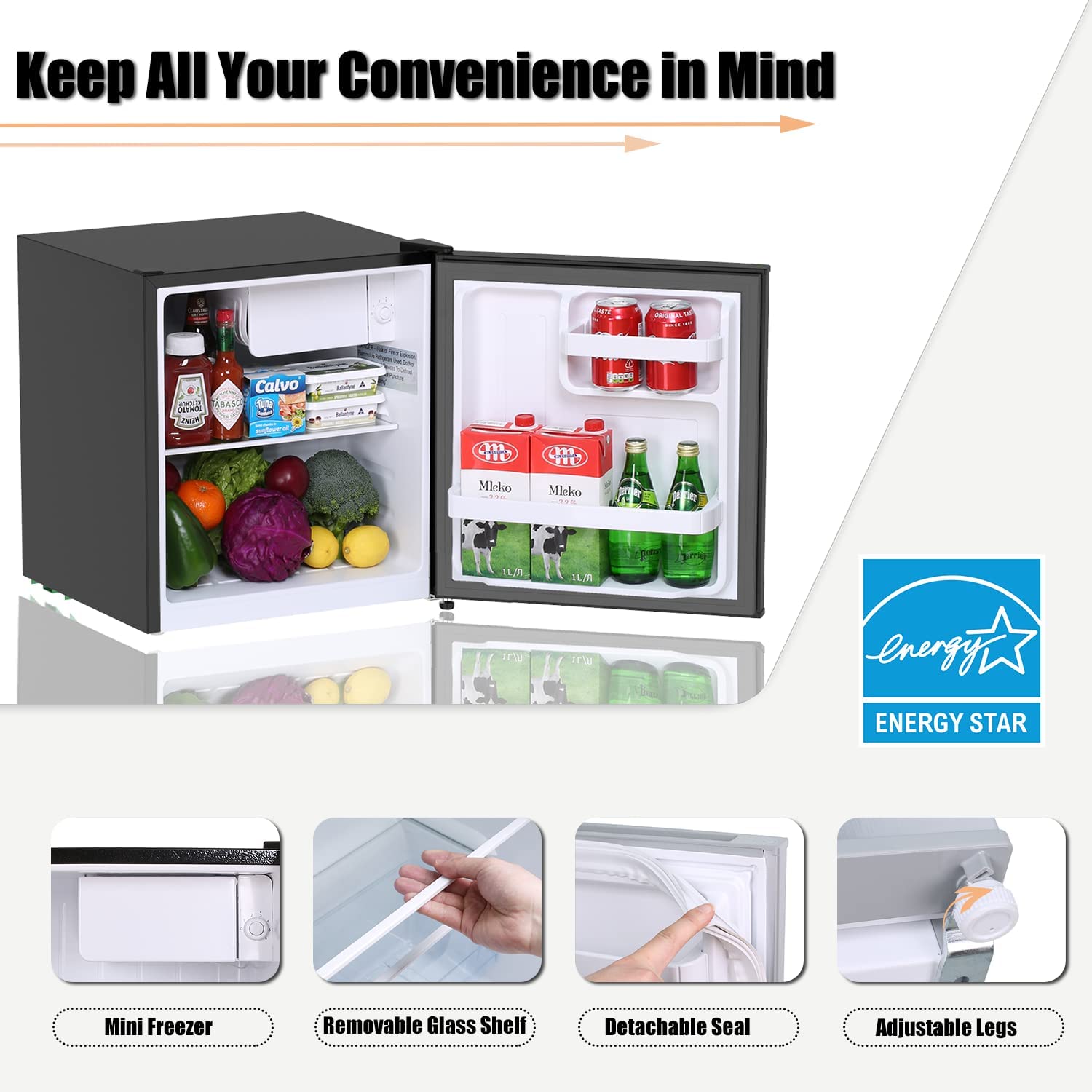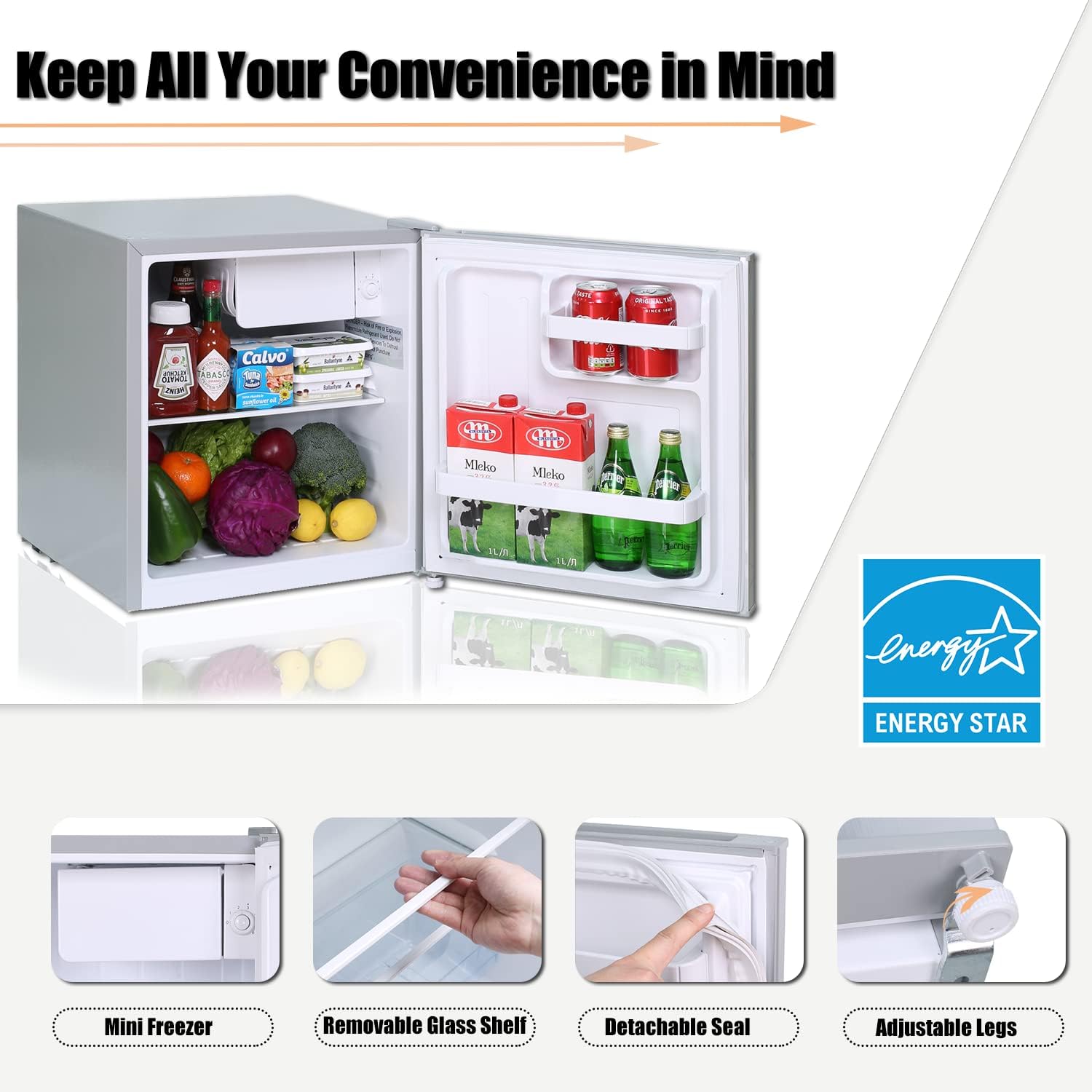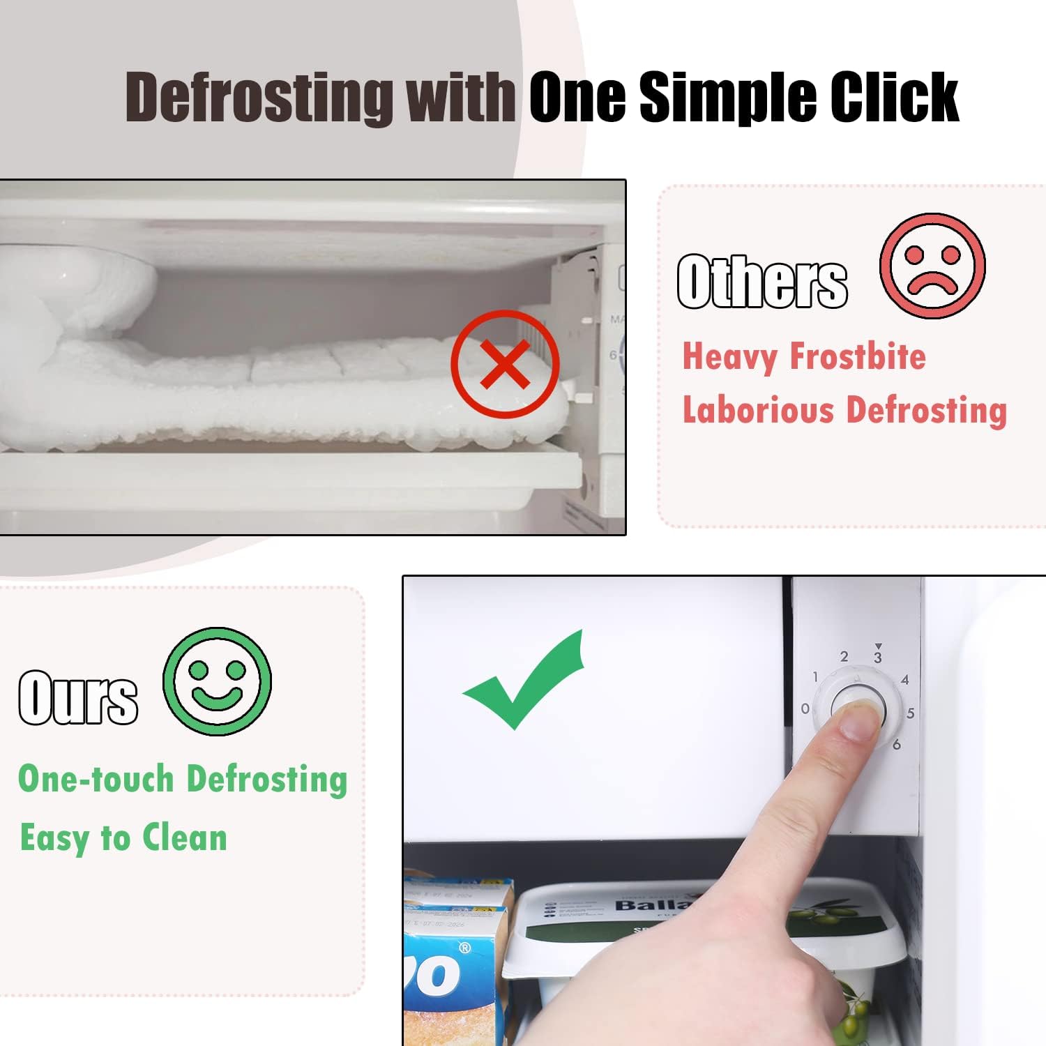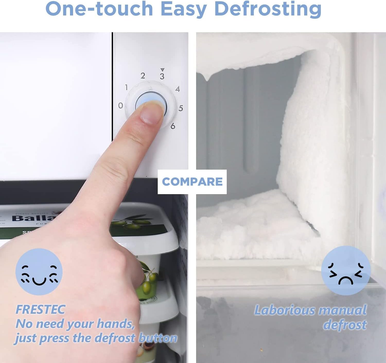 • 6 Adjustable Temperature Control: This mini fridge with freezer is equipped with a compact freezer that ensures frozen food freshness and stores favorite ice-cream. Performed from 28°F to 50°F in refrigerator zone keeps drinks cool enough in hot weather.