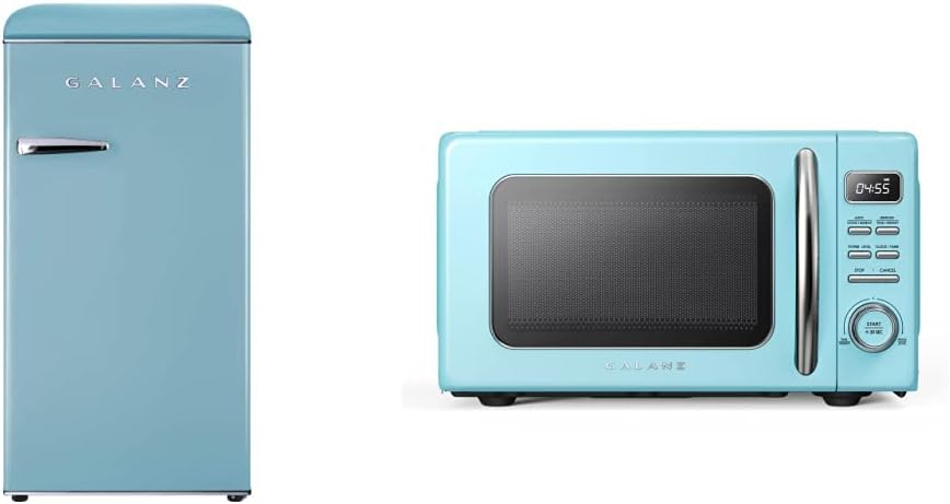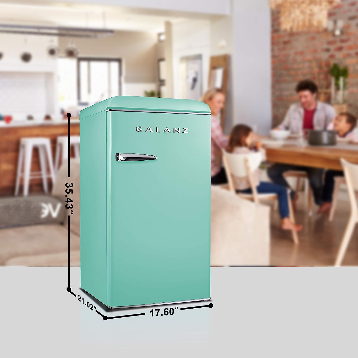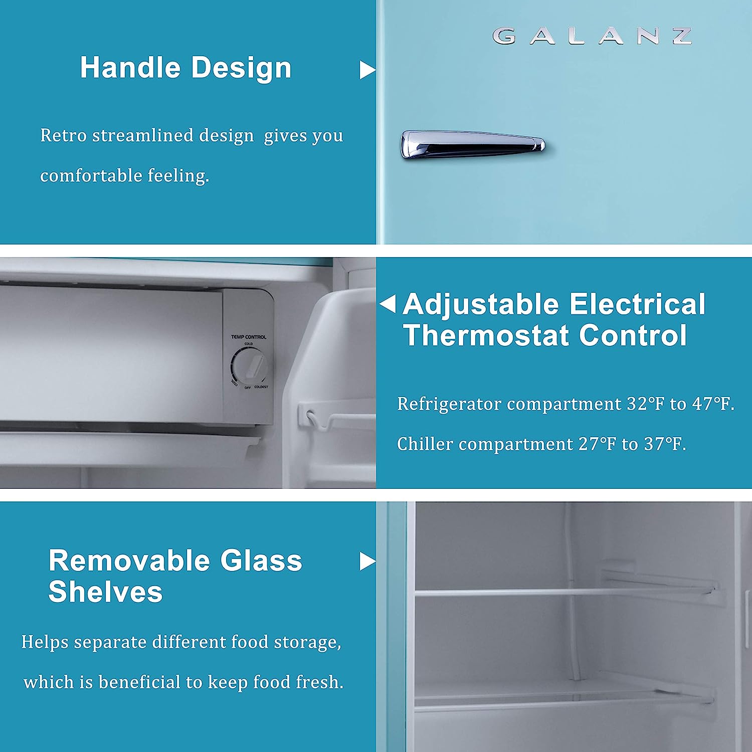 Galanz GLR33MBER10 Retro Compact Refrigerator, Single Door Fridge, Adjustable Mechanical Thermostat with Chiller, Blue, 3.3 Cu Ft