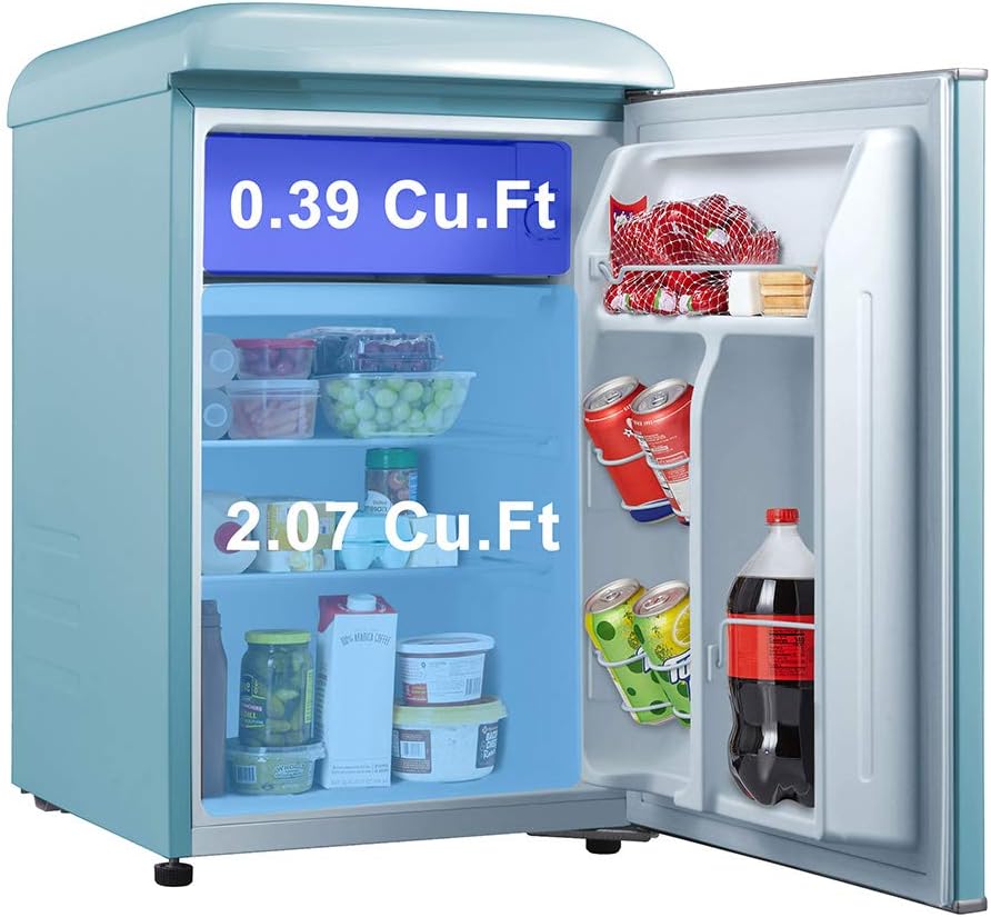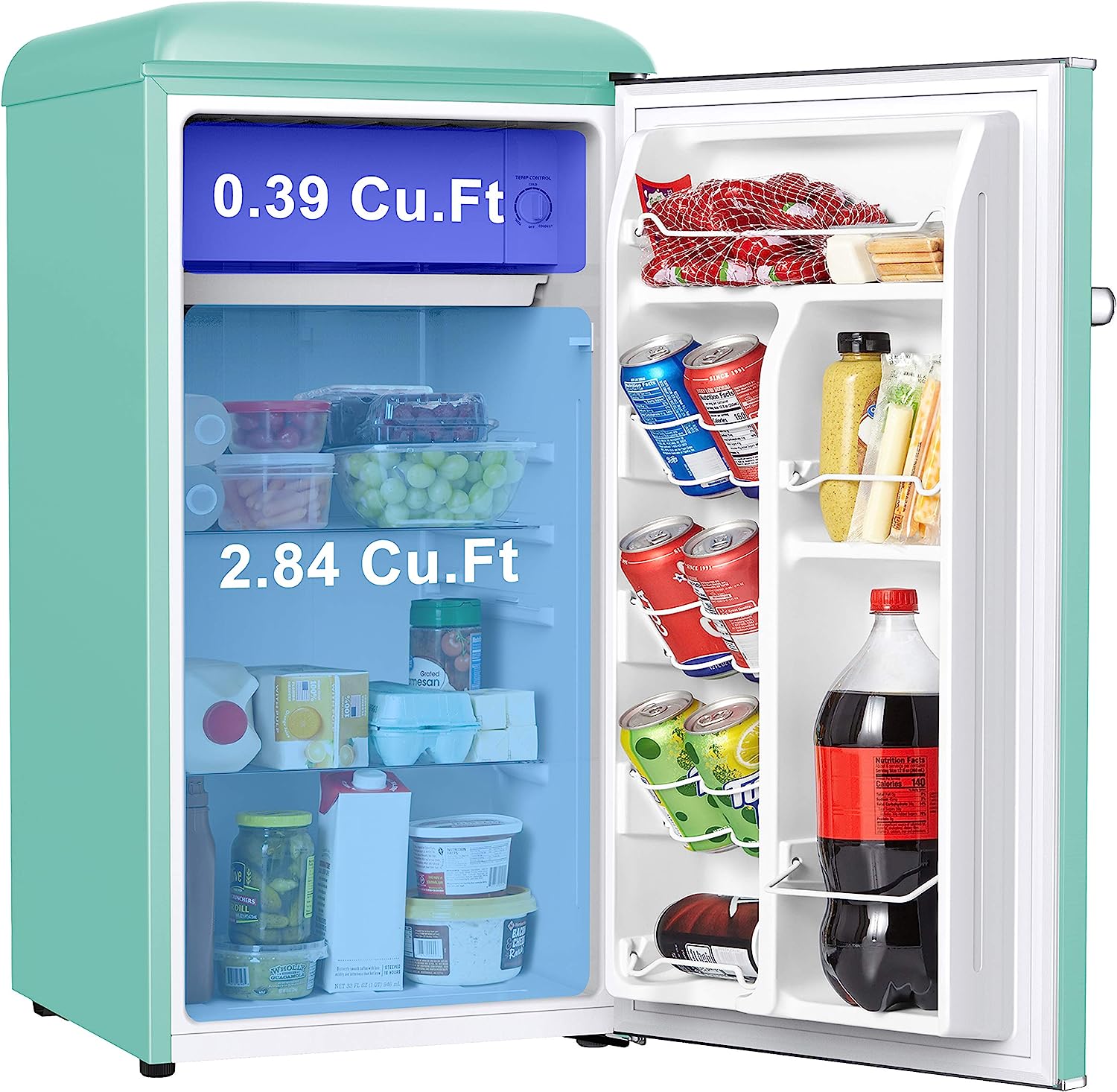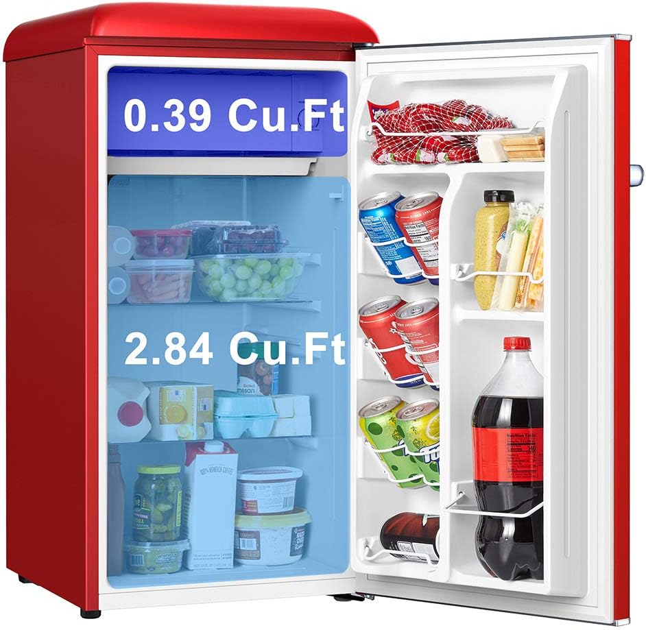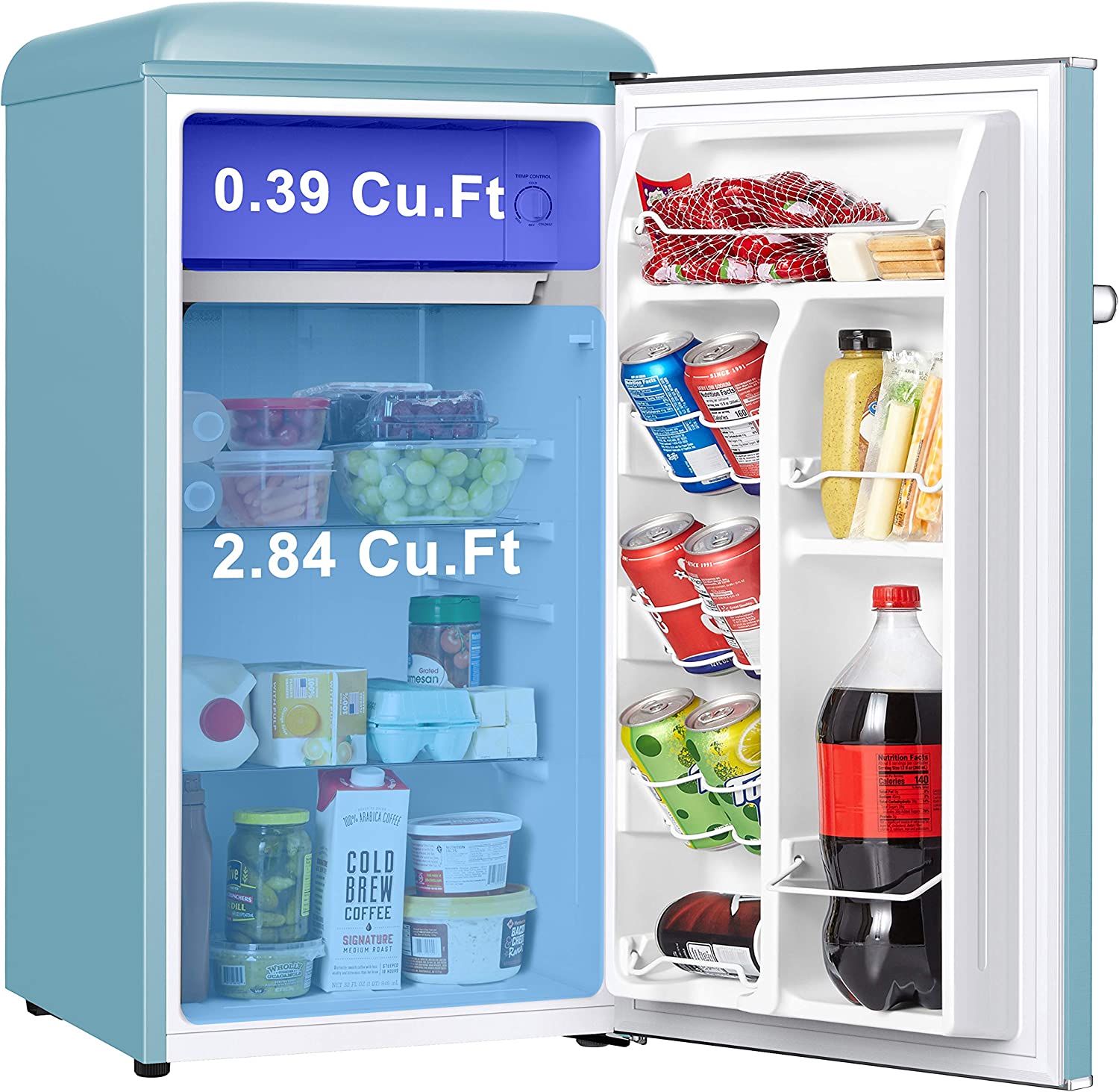 • This space saving refrigerator stores food, soda, beer, and other beverages with minimal energy and without taking up too much space | The sleek, retro design refrigerator is perfect for college dorm rooms, offices, garages, home bars