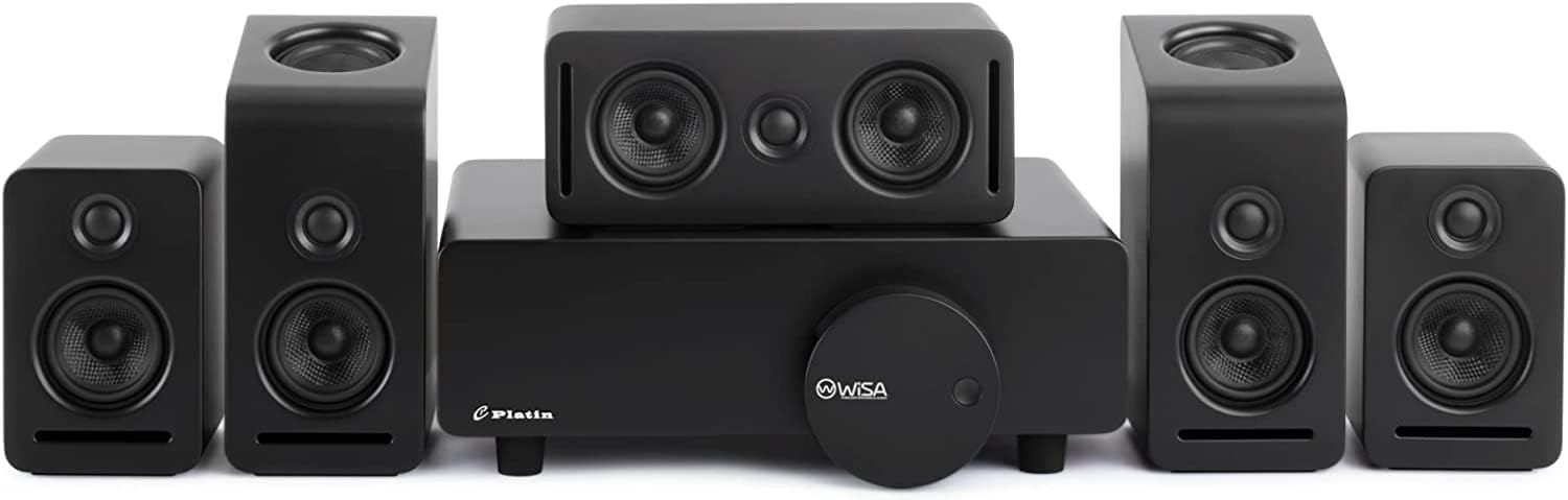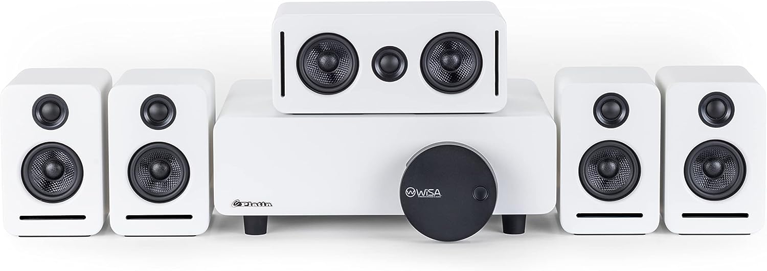 • HOME THEATER AUDIO: This speaker system boasts 5.1.2 channels of ultra high-quality uncompressed 24-bit 48 kHz sound transmission, picture-perfect lip sync with an undetectable latency factor of less than 5.2 milliseconds, and unmatched dialogue accuracy and clarity Voices will match the video and you will hear the voices separate from the background.. Unlike wifi speakers with 2 channels, Platin Audio systems have 8 channels of sound, creating the most immersive, wireless system on the market.