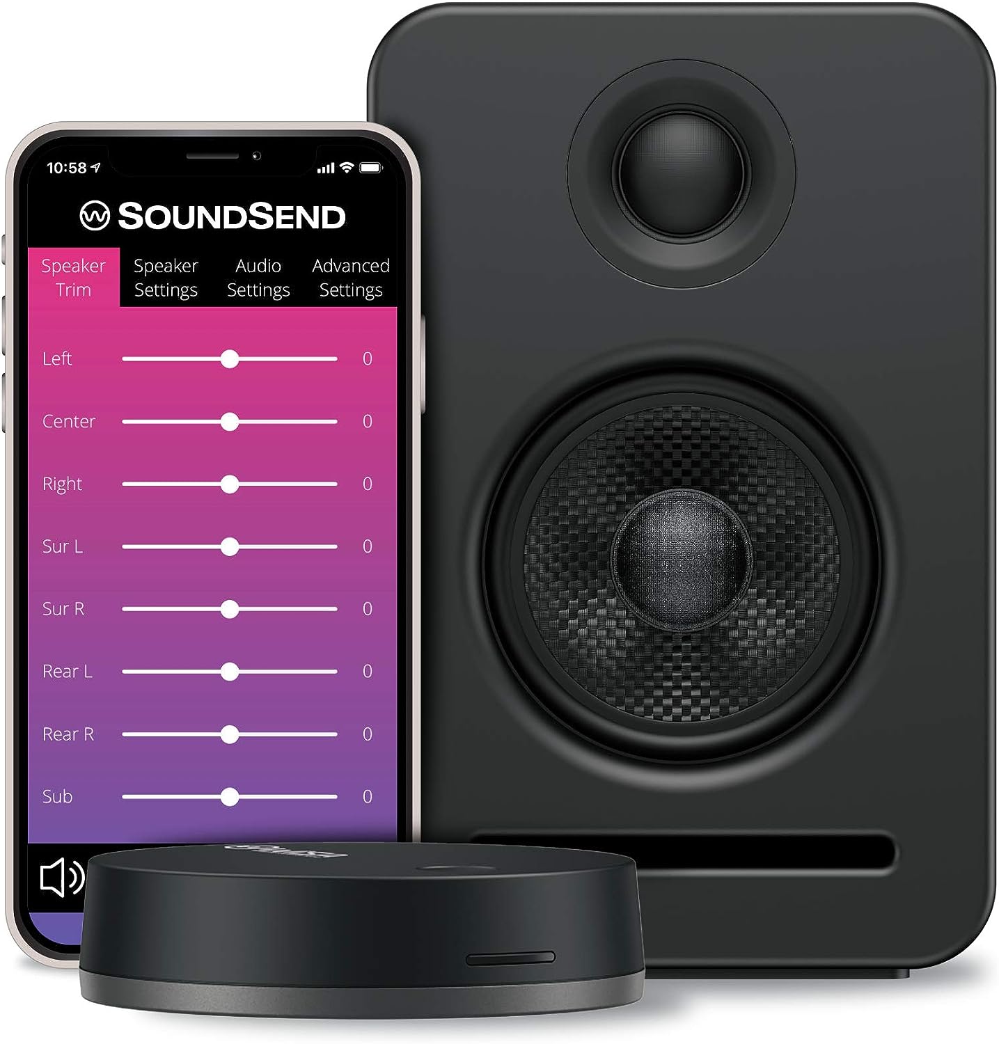 • EASY TO OPERATE: Adjust the volume on your wireless home theater system with your TV remote or from your phone. Use the SoundSend app if you wish to customize your listening experience by adjusting EQ settings, volume, and more—system wide or by individual speakers.