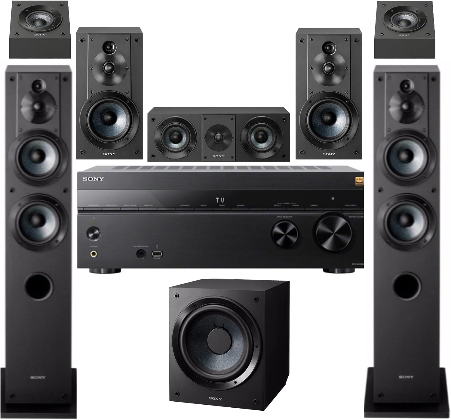 Sony STR-AN1000 7.2 Channel 8K AV Receiver with Dolby Atmos, DTS:X with Complete SONY 8 Speaker System Bundle (7 Items)