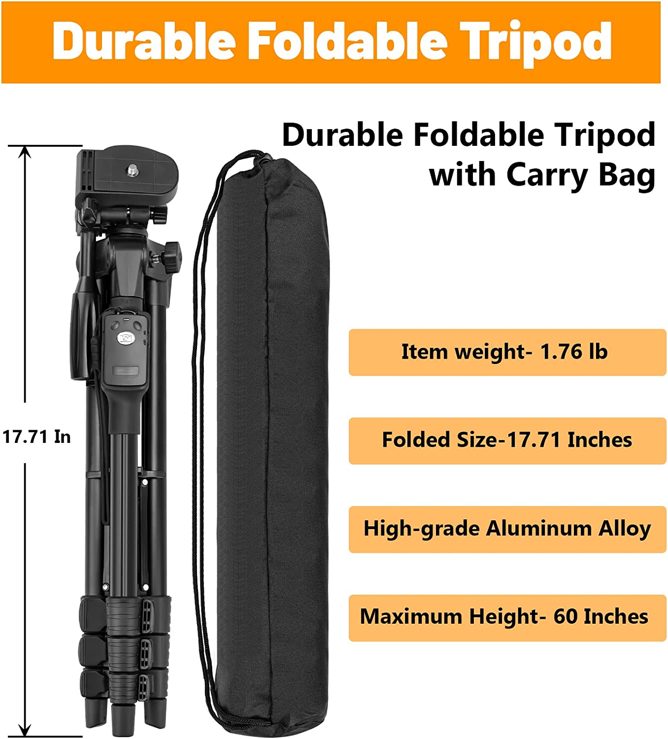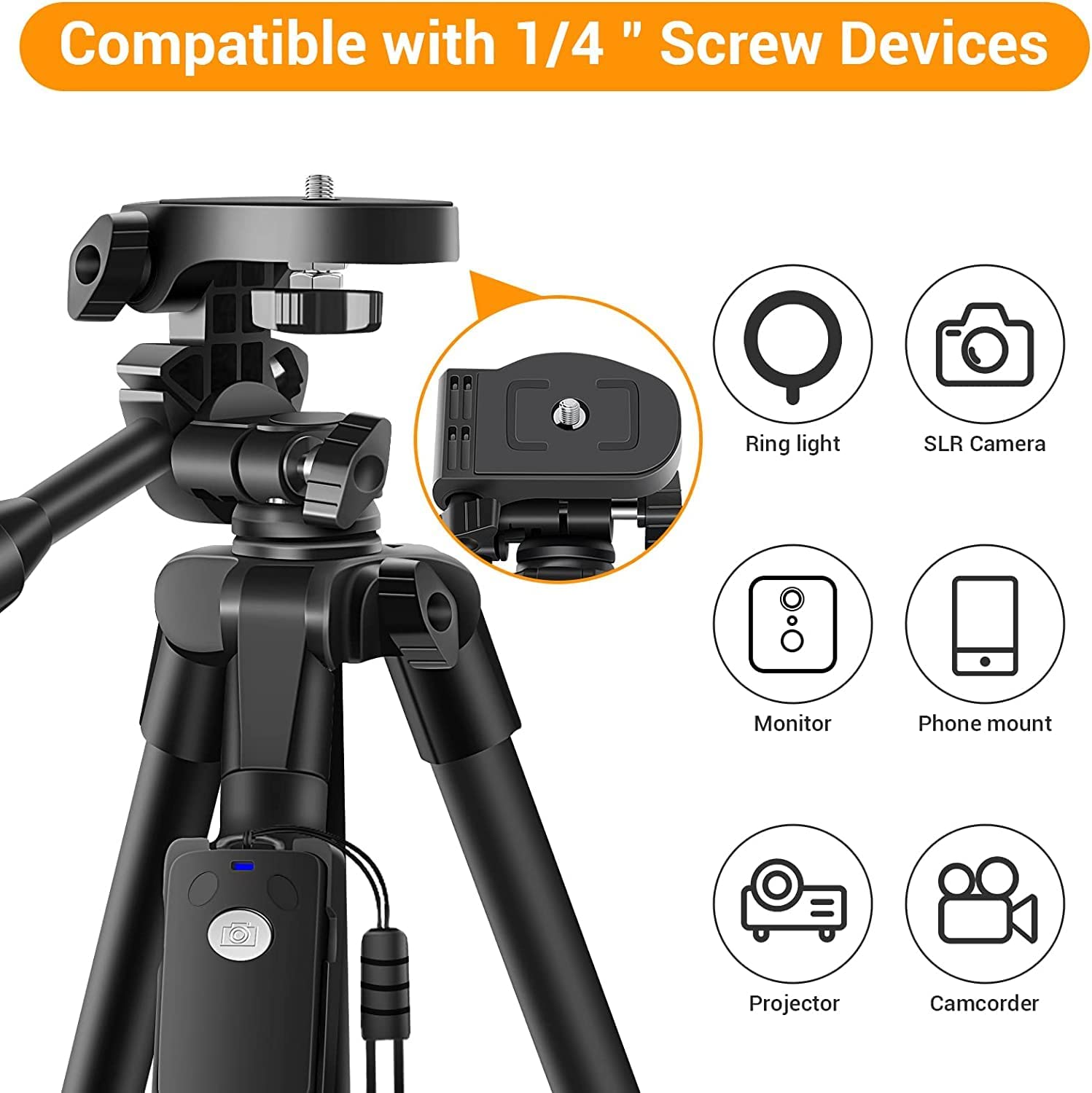 60" Camera Tripod with Travel Bag,Cell Phone Tripod with Remote,Professional Aluminum Portable Tripod Stand with Phone Tripod Mount&1/4”Screw,Compatible with Phone/Camera/Projector/DSLR/SLR