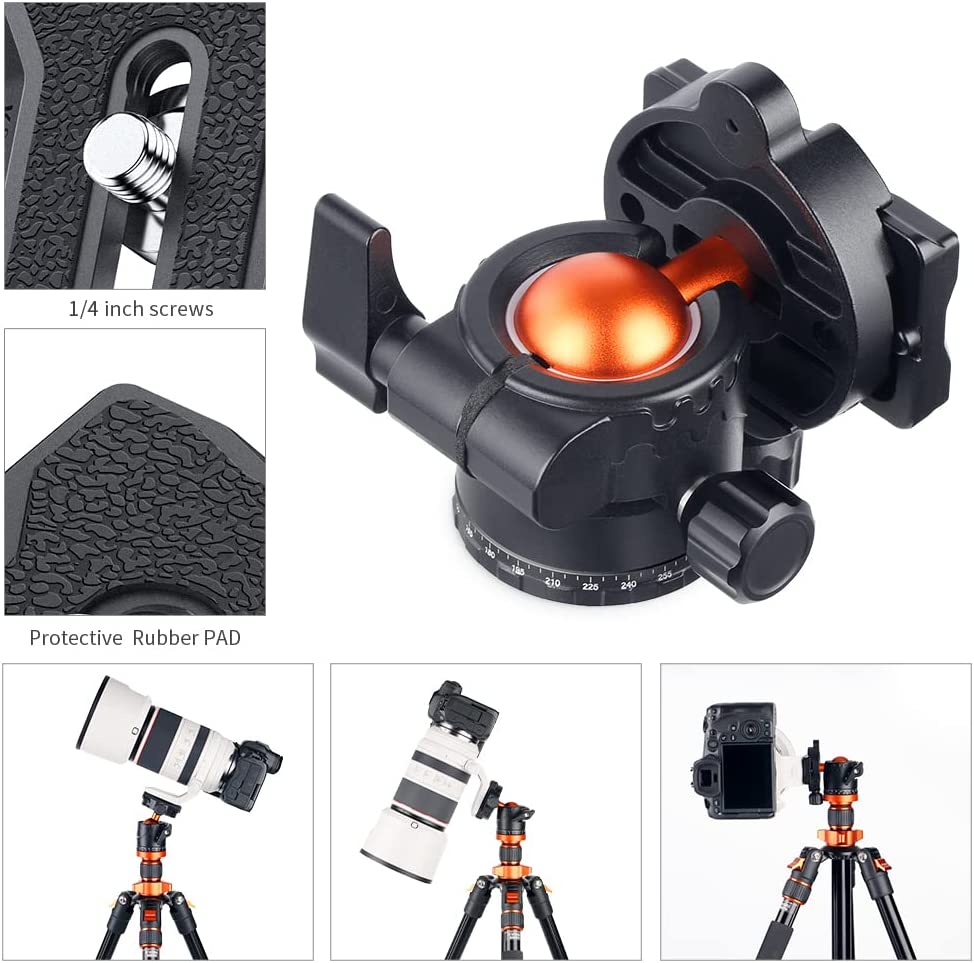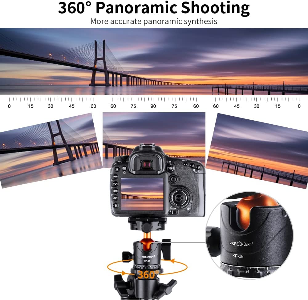 • 28mm Large 360° Metal Ball-Head:With two independent control knobs, the specially designed 28mm metal ball-head can rotate 360 degree allowing you to take photos at any angle with horizontally and vertically.