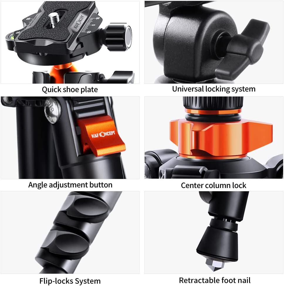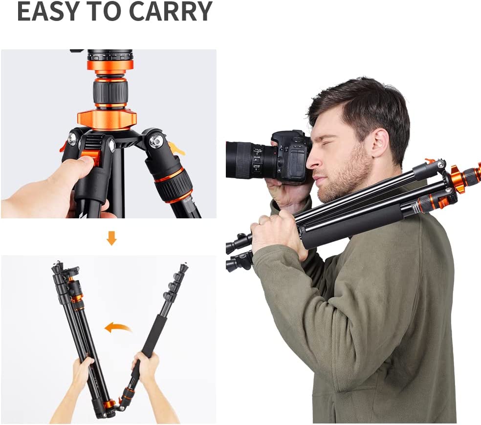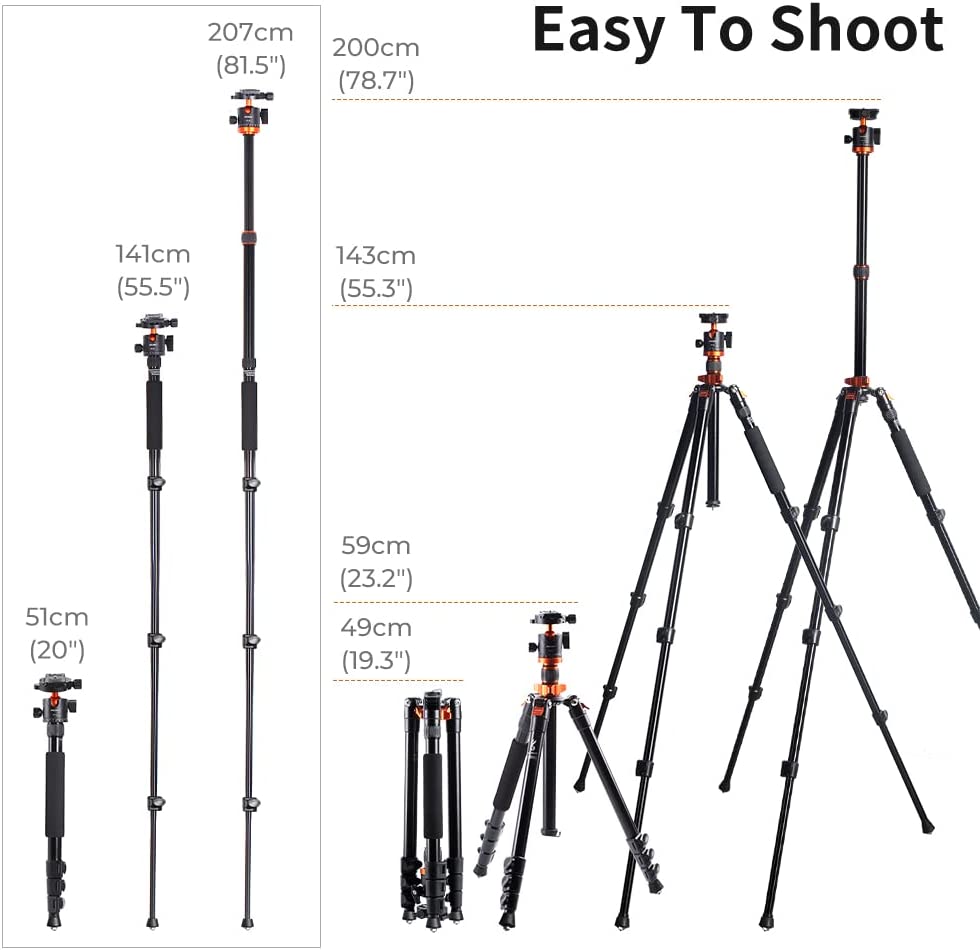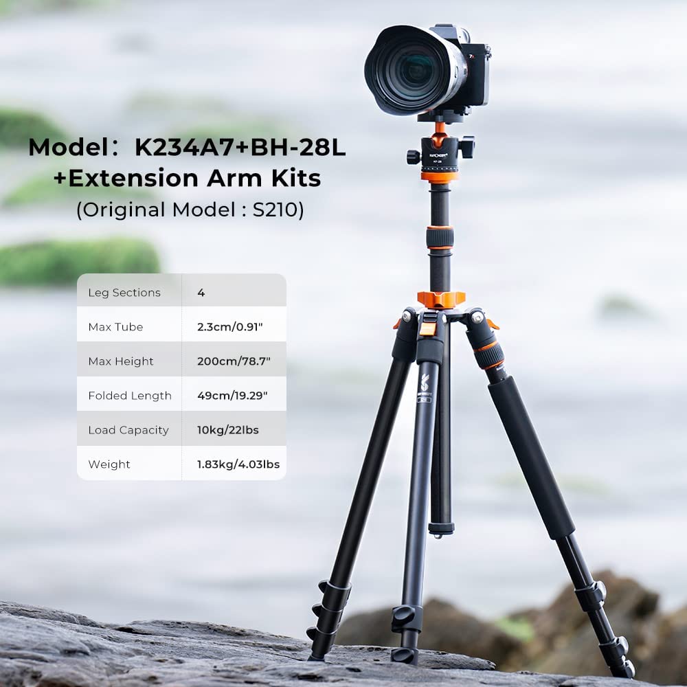 K&F Concept 78 inch Camera Tripod for DSLR Compact Aluminum Tripod with 360 Degree Ball Head and 10KG Load for Travel and Work K234A7+BH-28L (S210)