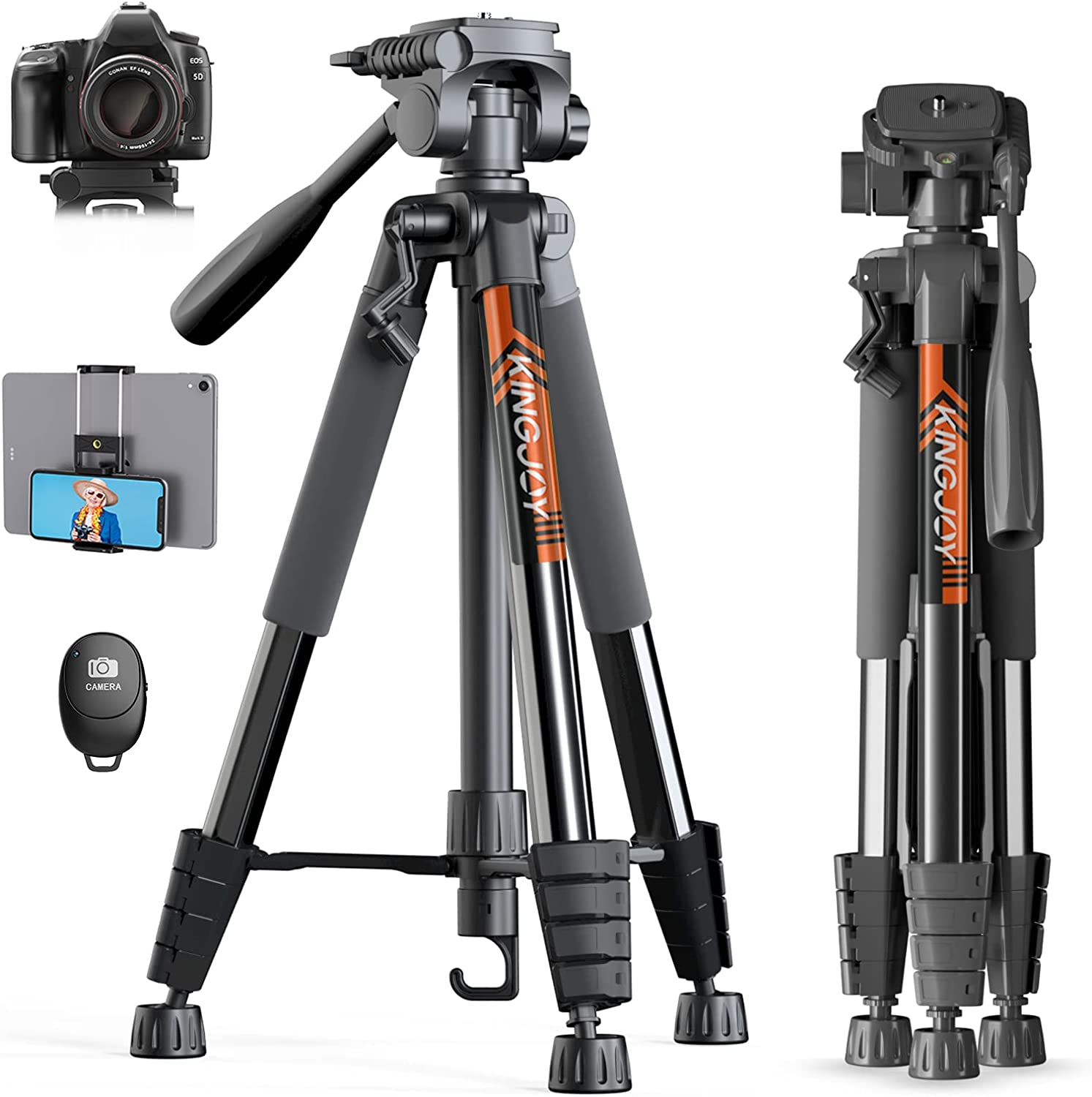 KINGJOY 75" Camera Tripod for Canon Nikon Cell Phone Tall Tripod with Wireless Remote Travel Bag Phone Tablet Holder Compatible with DSLR Cameras, Cell Phones, Projector, Binocular, Spotting Scopes