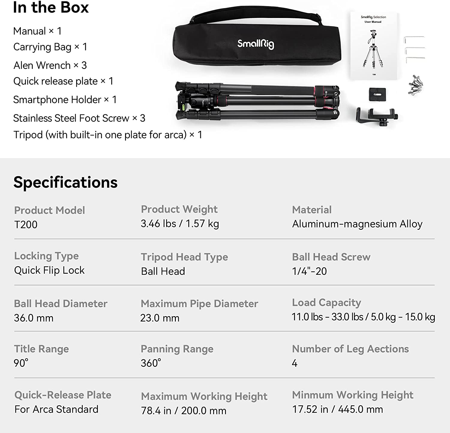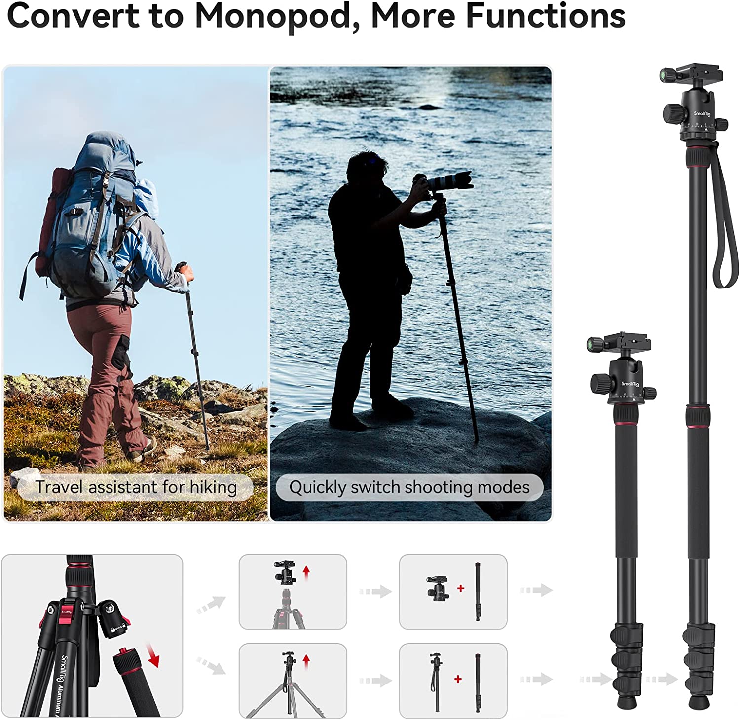 SmallRig 78" Camera Tripod, Foldable Aluminum Tripod & Monopod, 360°Ball Head Detachable and Quick Release Plate, Payload 33lb, Adjustable Height from 18.5" to 78" for Camera, Phone - 3474