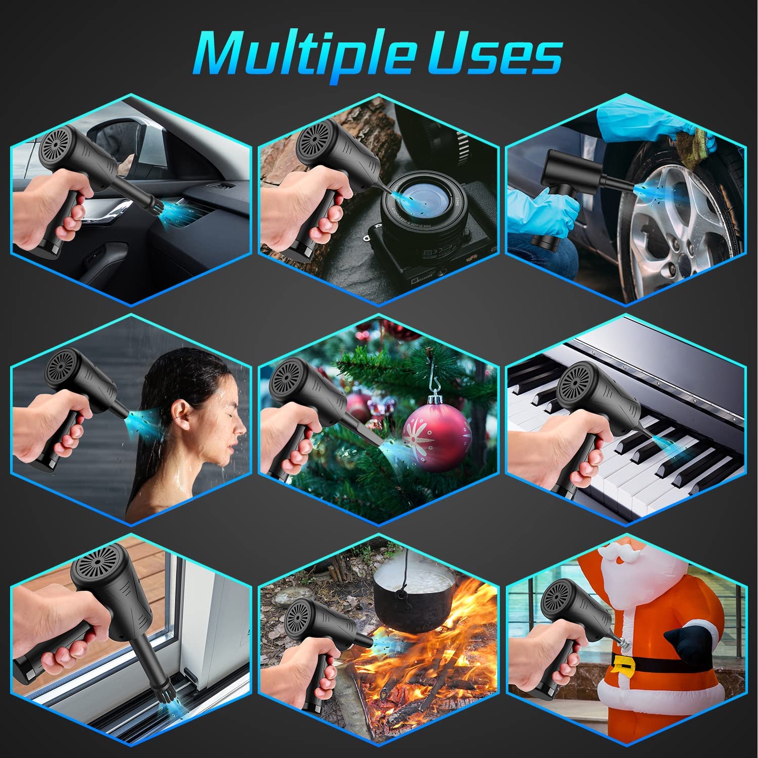 • Compressed Air Duster【Multi-use】:This air duster used for PC, computer cases, keyboard cleaner, camera, plant, car, pet hair, fans, lily windows, swimming rings, yoga balls, steamboats, air mattresses, etc.
