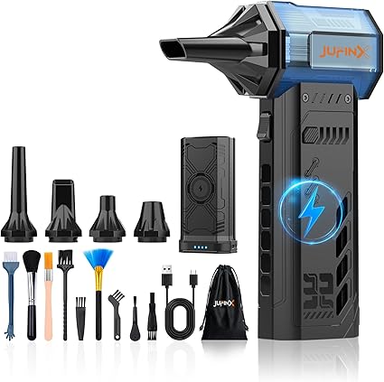 X301 Compressed Air Duster-250000RPM Super Power Electric Air Duster, Replaceable Batteries, Long Life mini Blower, 3-Gear Adjustable, 4 nozzles for Computer, Keyboard, Outdoors and Car Cleaning