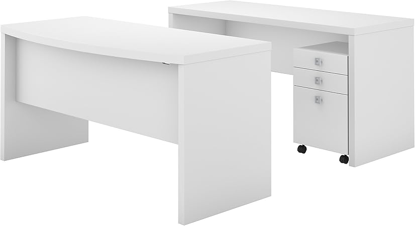 Bush Business Furniture Echo Bow Front Desk and Credenza with Mobile File Cabinet, 60W, Pure White