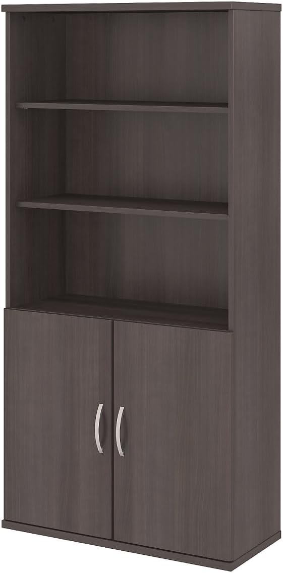 Bush Business Furniture Studio C Tall 5 Shelf Bookcase with Doors in Storm Gray, Large Bookshelf Cabinet for Home or Professional Office