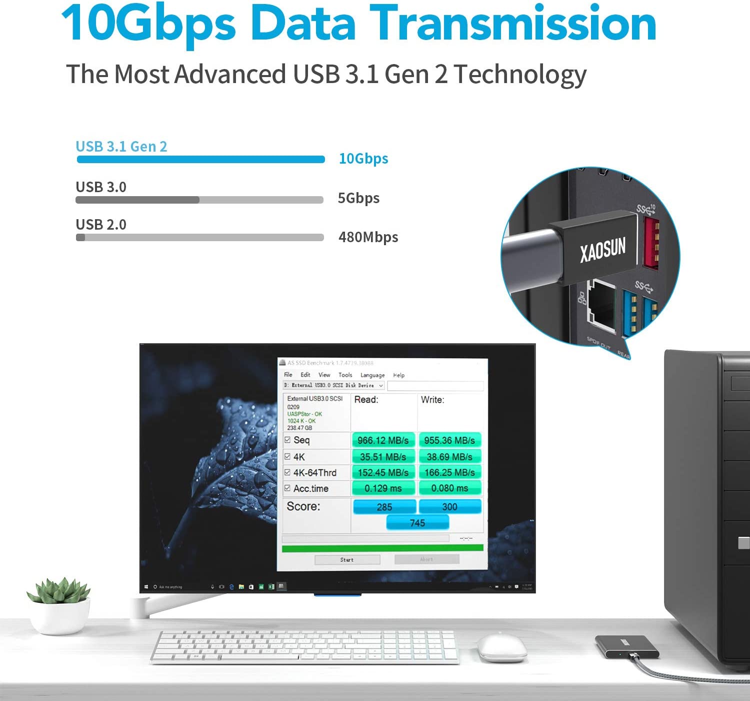 [10Gbps] USB C Female to USB Male Adapter (2-Pack), 3.1 USB A to USB C Adapter, XAOSUN One-Sided SuperSpeed Data Sync & 100W Fast Charging - Compatible with Laptop, PC, Charger, Power Bank, Quest Link