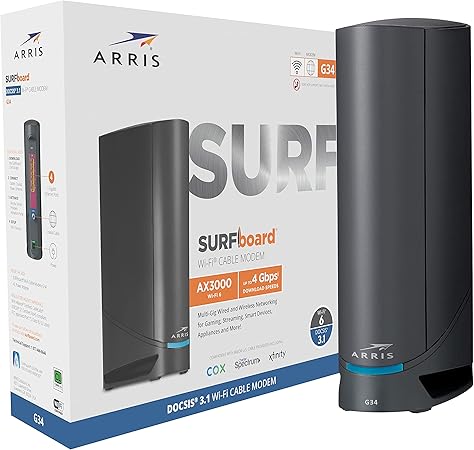 ARRIS Surfboard G34 DOCSIS 3.1 Gigabit Cable Modem & AX3000 Wi-Fi 6 Router, Approved for Cox, Spectrum, Xfinity & Others (Renewed) black