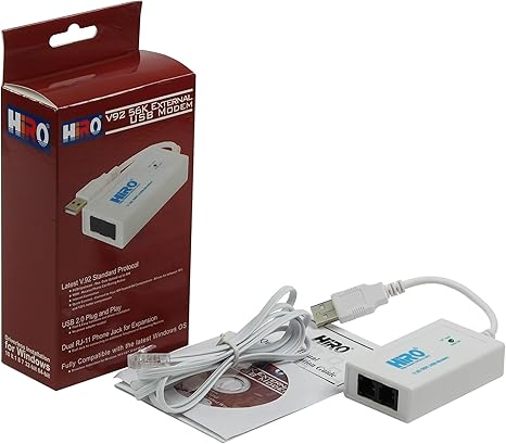 HiRO V92 56K External USB Data Fax Dial Up Internet Modem Dual Port Built in Buzzer Truly Plug n Play Driverless Installation Built in Driver Windows 10, 8.1, 8, 7, 32-bit 64-bit (H50228)