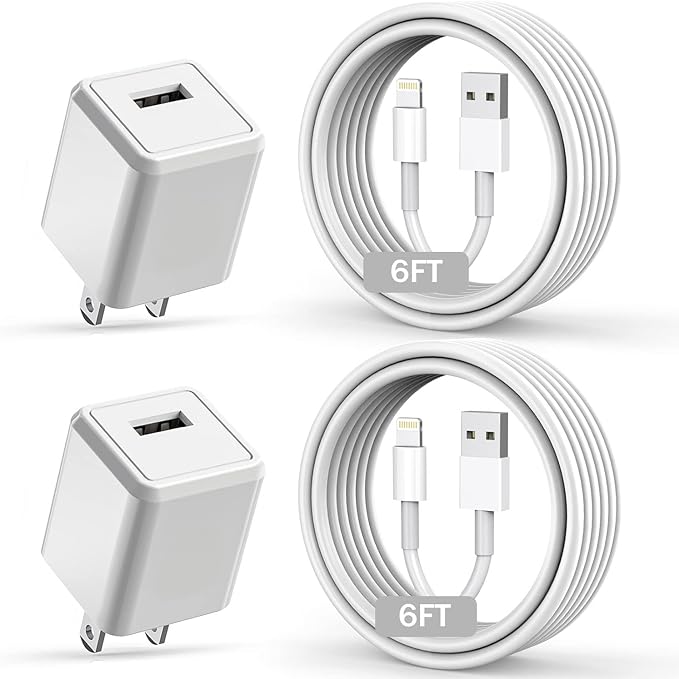 iPhone Charger, Long 6FT iPhone Charger 2Pack iPhone Cord 6feet USB to Lightning Cable Quick Fast Charging Data Sync Cord USB Wall Charger Block Adapter for iPhone 14/13/12/11/XS/XR/X/8/7/5/SE2022/iPad