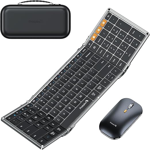 ProtoArc Foldable Keyboard and Mouse, XKM01 True Full-Size Folding Keyboard Mouse Combo for Business and Travel, 2.4G+Dual Bluetooth Portable Mouse Keyboard for Laptop iPads Tablets - Black Gray