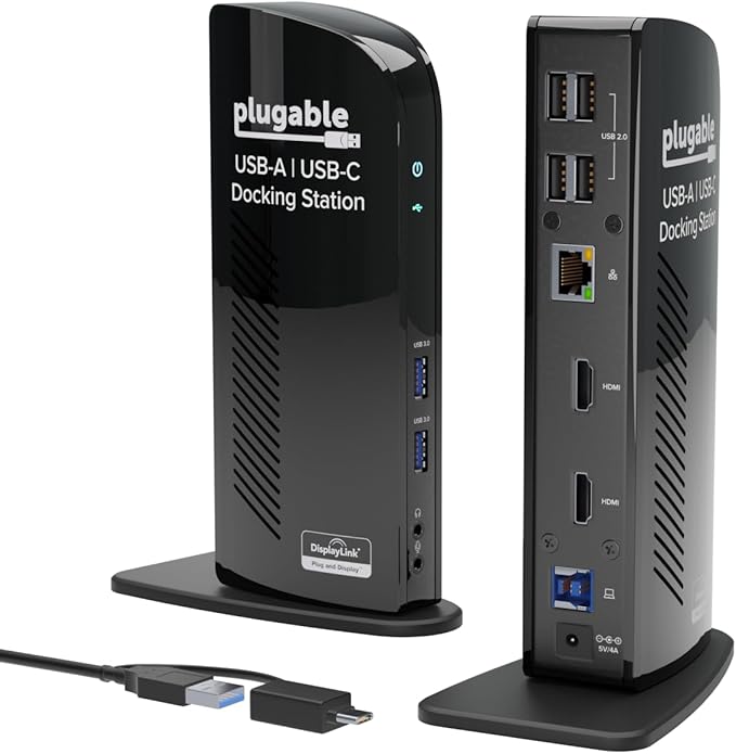 Plugable Universal Laptop Docking Station Dual HDMI Monitor for Windows and Mac (Driver Required), USB 3.0 or USB-C, 2X HDMI, Gigabit Ethernet, Audio, 6 USB Ports (UD-3900)