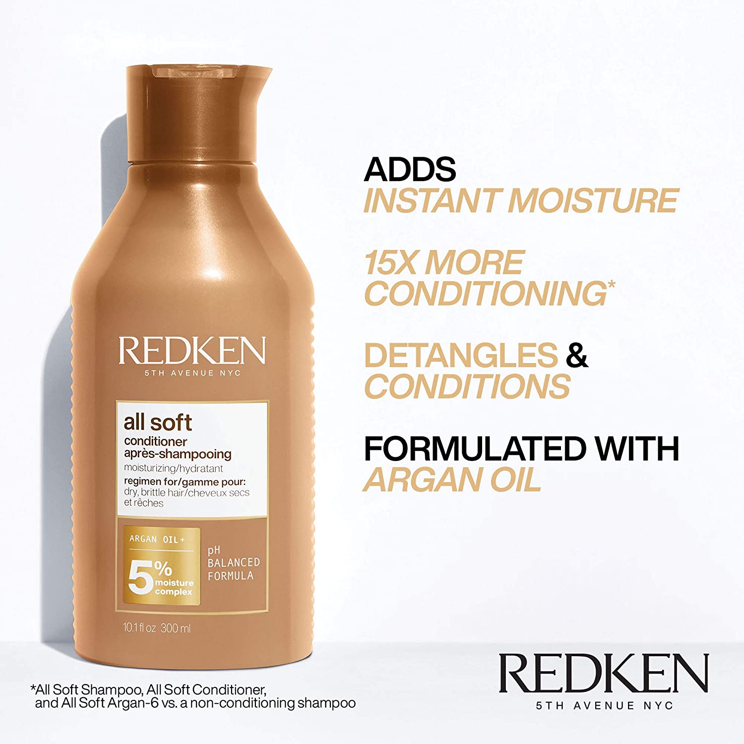 REDKEN All Soft Shampoo & Conditioner Set | For Dry/Brittle Hair | Provides Intense Softness and Shine | With Argan Oil