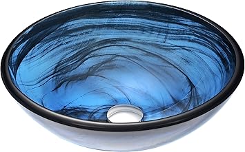 ANZZI Soave Modern Tempered Glass Vessel Bowl Sink in Sapphire Wisp, Blue Top Mount Bathroom sinks above counter, Round Vanity Countertop Sink Bowl with Pop Up Drain, LS-AZ048