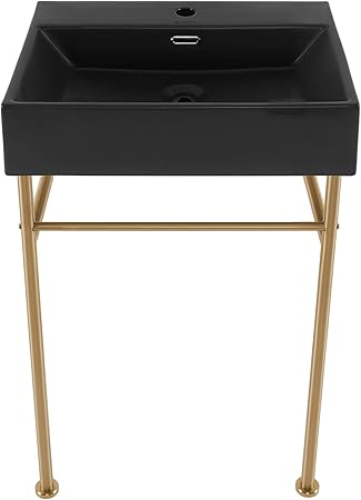 Claire 24" Ceramic Console Sink Matte Black Basin Brushed Gold Legs