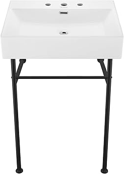 Claire 24" Console Sink White Basin Black Legs with 8" Widespread Holes