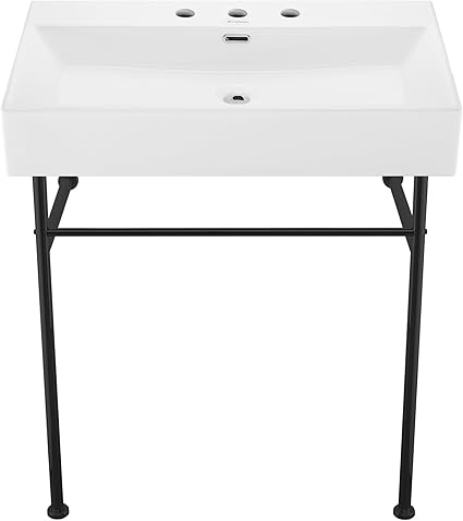 Claire 30" Console Sink White Basin Black Legs with 8" Widespread Holes