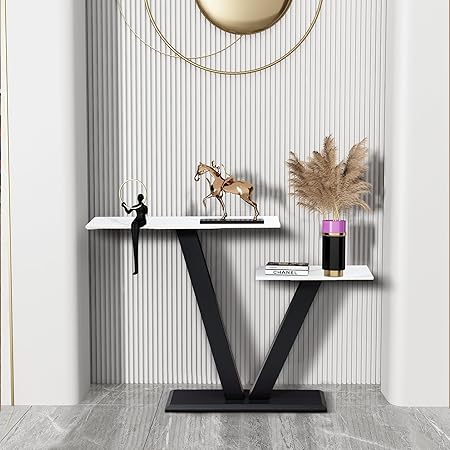 47.24'' Modern Console Table, Sintered Stone Entryway Table, Narrow Table Sofa Table with Geometric Shape Metal Base, Entry Table Foyer Table for Entrance, Living Room, Hallway