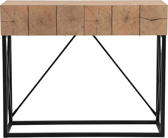 Console Table Entryway Table, Industrial 43'' Luxury Wood Sofa Table Accent Table with 2 Drawers Hallway Tables Sturdy Metal Frame for Entry Way, Hallway, Living Room, Natural+black
